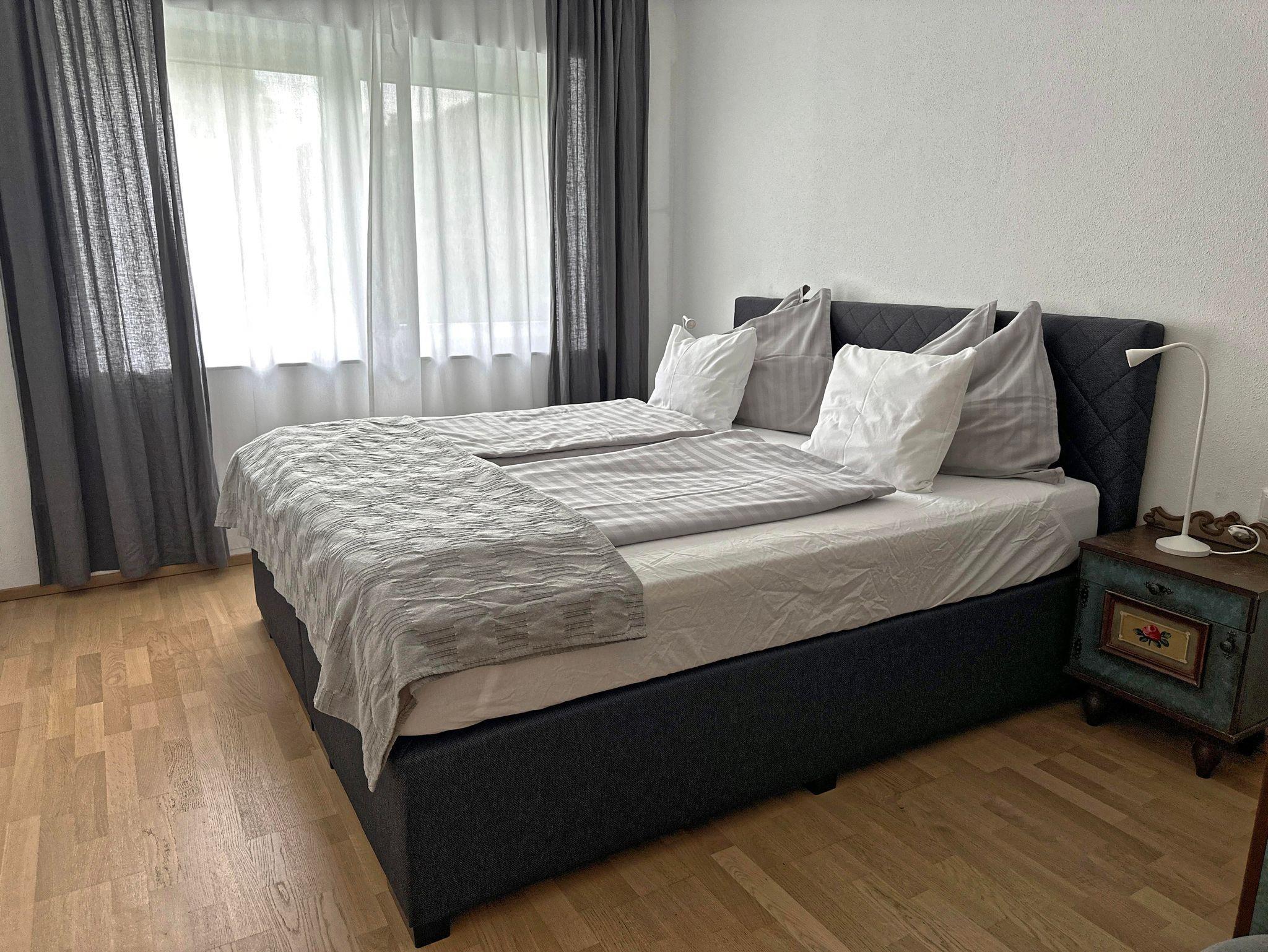 Die Ferienwohnung Talblick befindet sich im Erdgeschoss und verfügt über einen eigenen Eingang, welcher in einen großen Vorraum mit Bücherschrank, Waschmaschine und Wäscheständer und Schuhtrockner ausgestattet ist. Vom Vorraum aus erreicht man den Wohnraum mit Küchenzeile, Esstisch und gemütlicher Wohnzimmerecke. Vom Wohnzimmer aus geht eine Terrassentür auf die überdachte, westseitige Terrasse mit direktem Zugang zu einer pivaten Rasenfläche. Die Wohnung verfügt des weiteren über ein abgeschlossenes Badezimmer und ein Schlafzimmer.