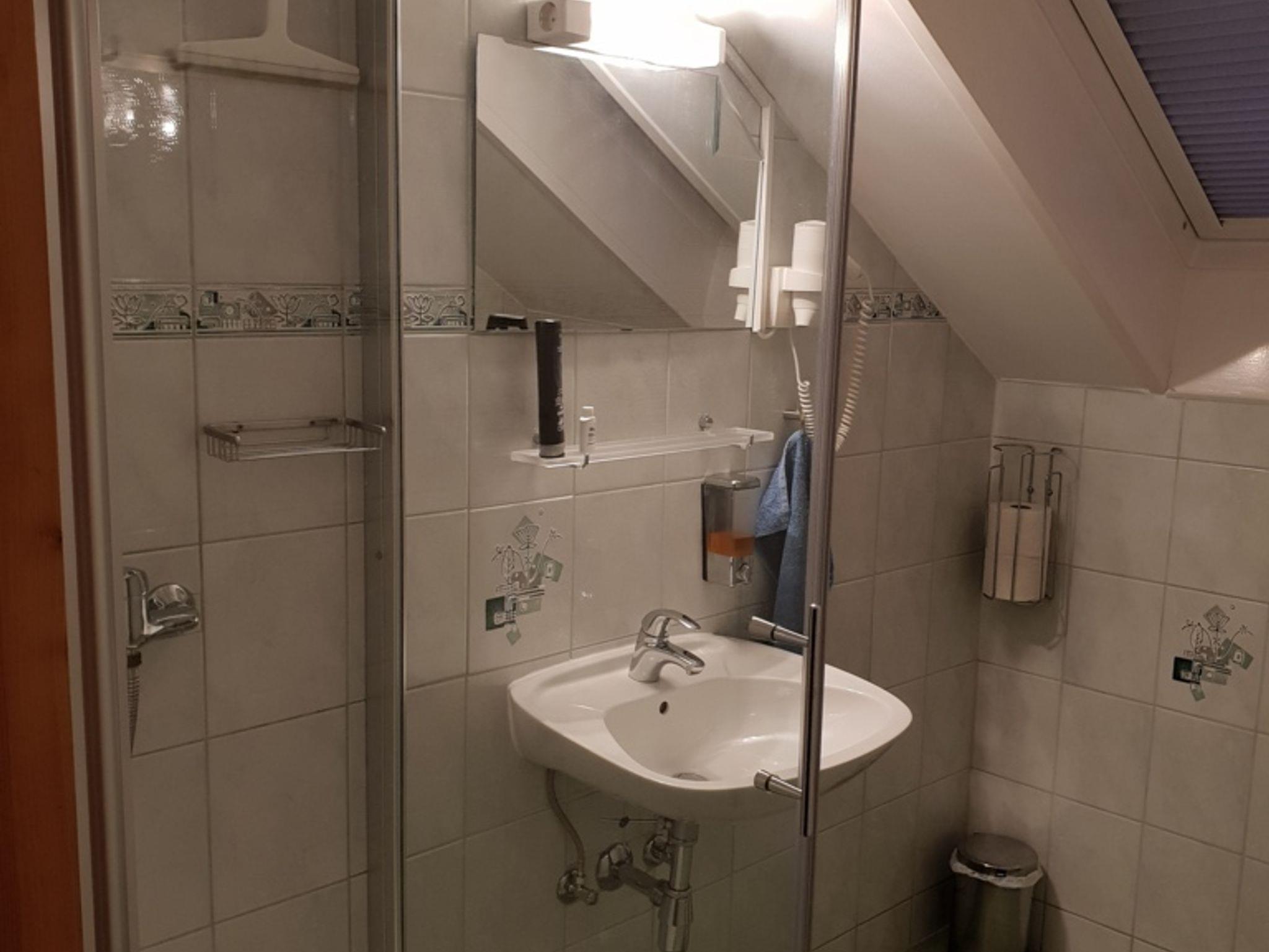 Dieses Zimmer verfügt zur alleinigen Nutzung über die Etagendusche und 2 WC´s auf dem häuslichen Flur.