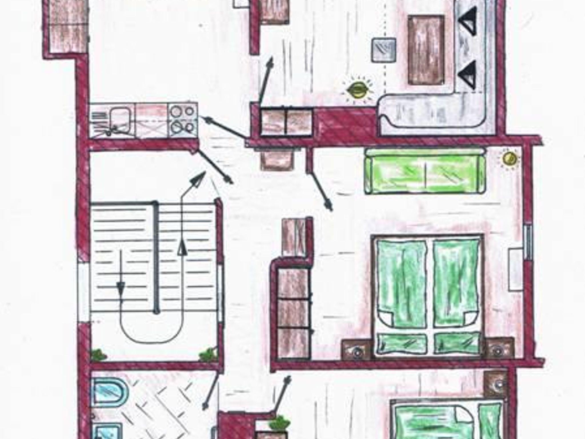 Unsere helle und freundlich eingerichtete Ferienwohnung befindet sich in der 2. Etage und bietet ausreichend Platz für bis zu 7 Personen. Sie verfügt über 2 separate Schlafzimmer (1Doppel- u.1Dreibettzimmer) perfekt für Paare oder Familien mit Kindern oder Freunde die gemeinsam Urlaub machen möchten. Enstpannen Sie sich auf der ausziehbaren Couch im separaten Wohnzimmer mit Flachbildschirm; Kochen Sie ihre Lieblingsgerichte in der großen voll ausgestatteten Küche mit großer Eckbank; Bad mit Dusche/WC; Genießen Sie die ersten Sonnenstrahlen auf dem Balkon und bleiben Sie verbunden mit gratis WLAN.