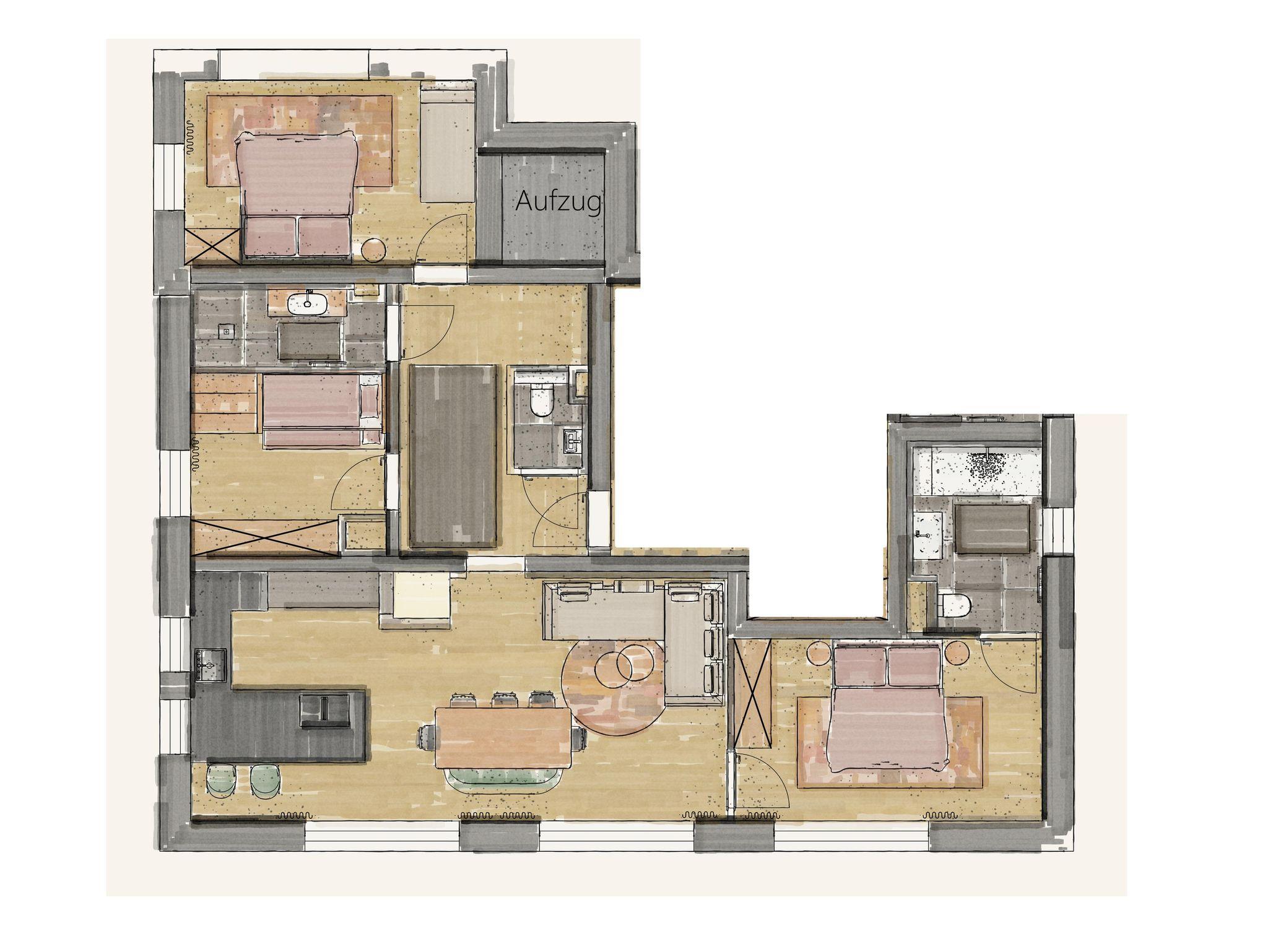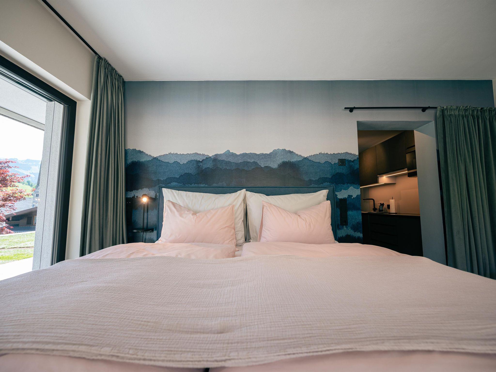 Die Wohnung wurde mit Naturmaterialien in einem stylishen Mix, passendes Farbkonzept zur Almwiese liebevoll eingerichtet. Die tolle private Aussensauna erfreut alle ab Sommer 2022.