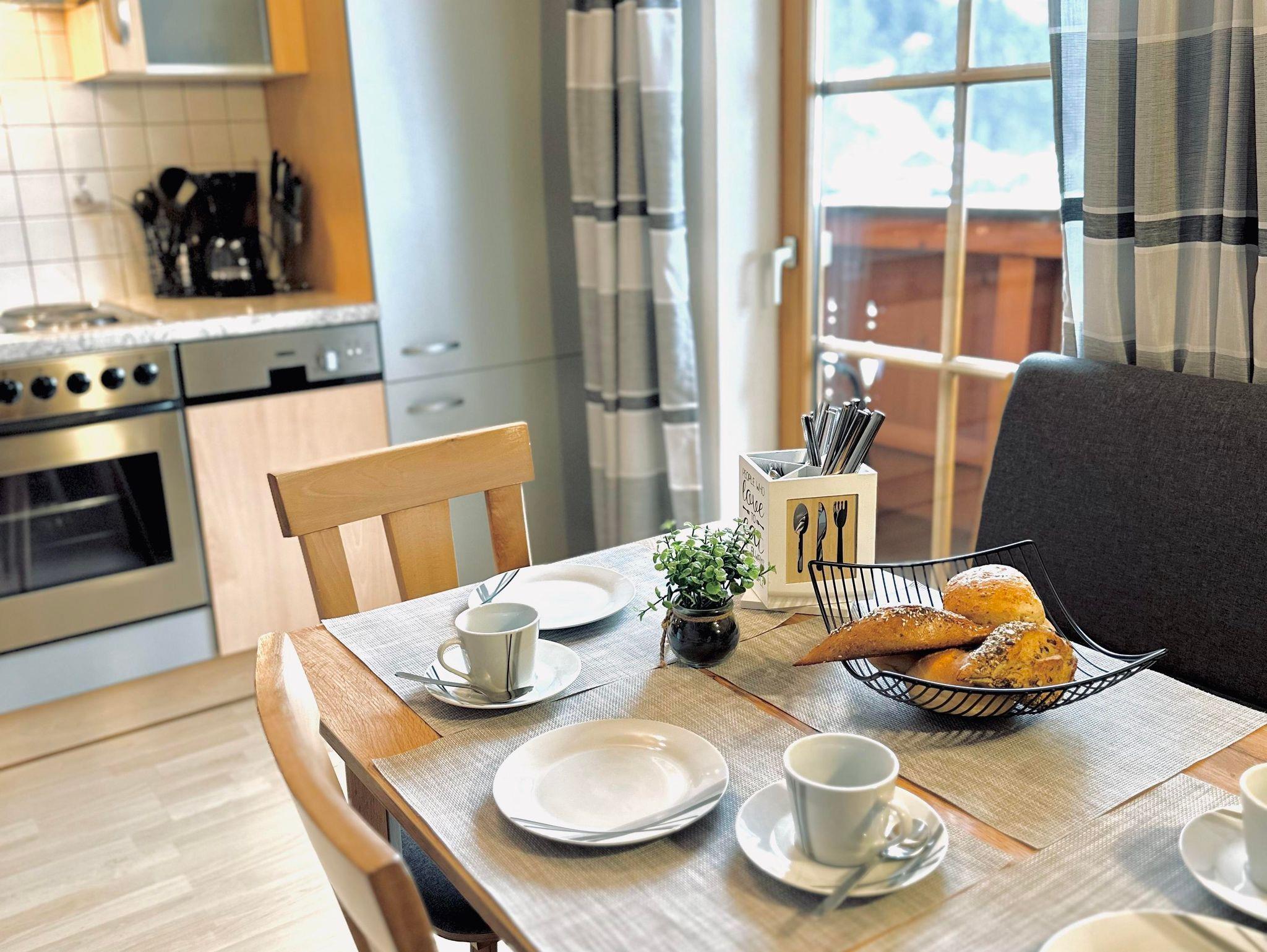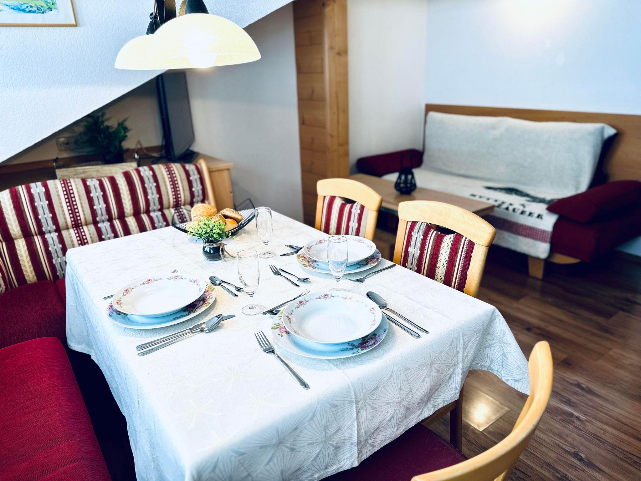 Traumhafte Ferienwohnung mit 2 getrennten Schlafzimmern,1 Doppelbettzimmer, 1 Zimmer mit 2 Einzelbetten, Wohn-Küche, Eckbanksitzgruppe, getrennte Dusche, WC, Kabel-TV und sonniger Balkon mit Bergblick, kostenloses W-LAN;