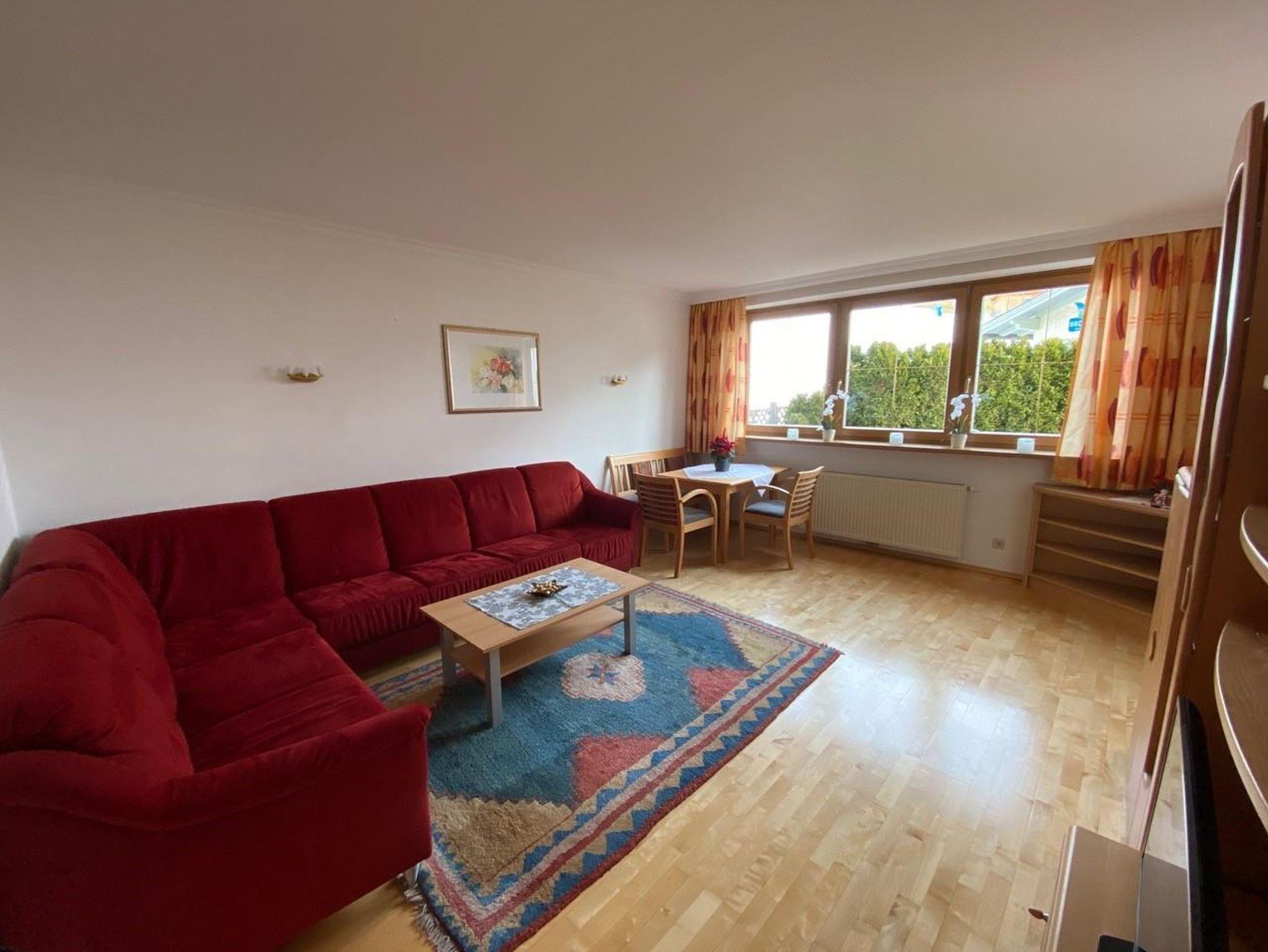 Gemütliche Ferienwohnung 65m2, direkt gegenüber dem Skilift in Maria Alm und nur 5 Gehminuten vom Ortszentrum entfernt. Die Ferienwohnung hat 1 Schlafzimmer, einen großen Wohnbereich mit Schlafsofa und ist ebenfalls mit einer geräumigen Küche sowie Badezimmer mit Dusche ausgestattet. WC separat.WIFI. Versperrbares Kellerabteil und eigenes Carport sind ebenfalls vorhanden.
