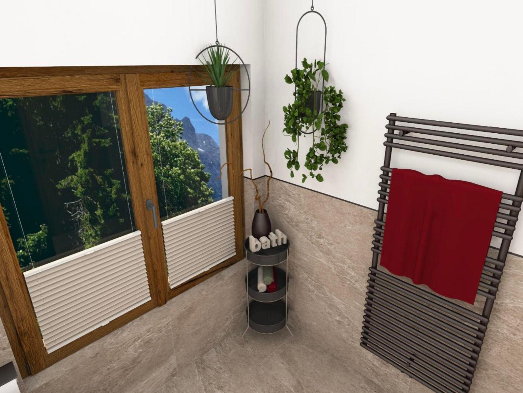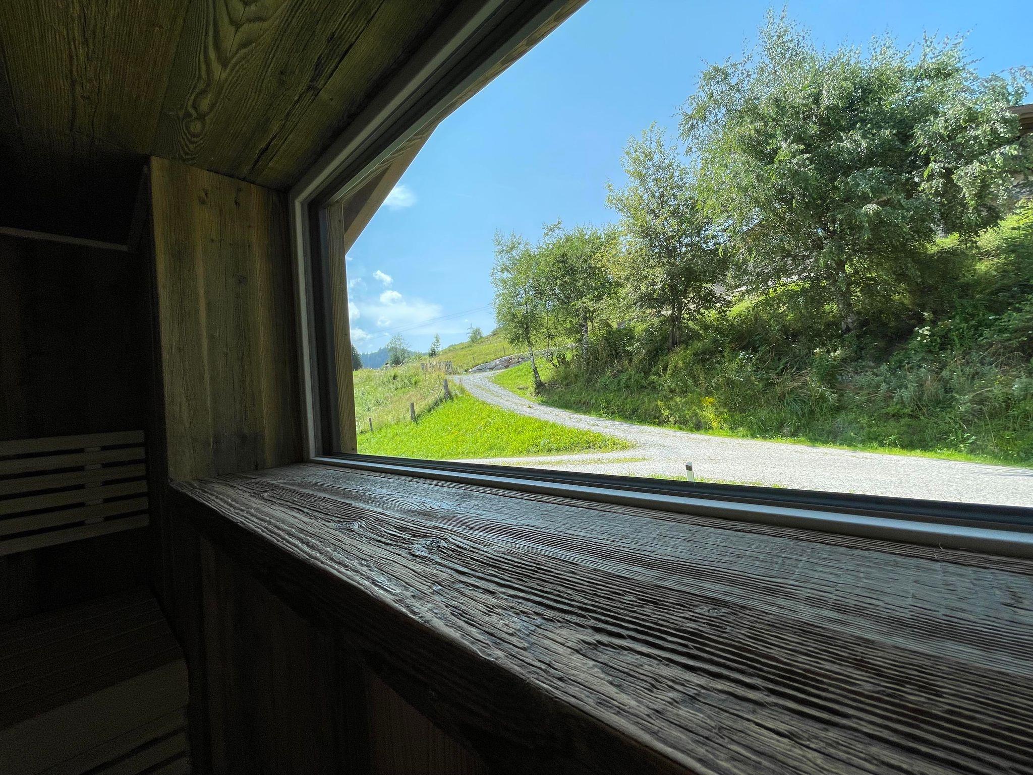 Das 1. Schlafzimmer bietet ein Bad-en Suite mit sichtbaren Dachstuhl. Das 2. Schlafzimmer hat ein extra Bad, von dem man in die Sauna gelangt mit Blick auf die Hinterthaler Berge.