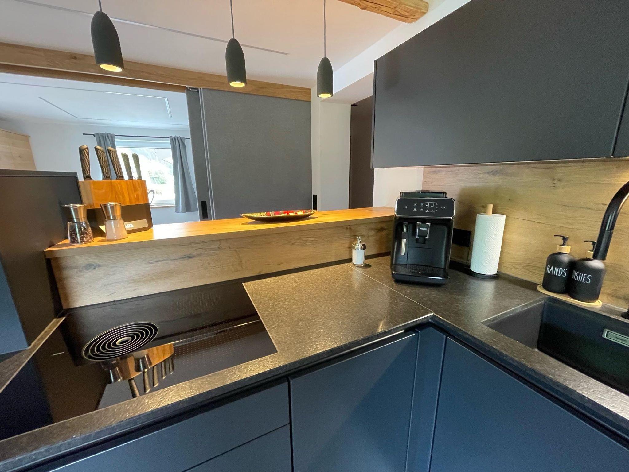 Kernsanierte 95m2 grosse Ferienwohnung mit 2 Schlafzimmern und 1 Schlafcouch. Es befindet sich überall eine Fussbodenheizung und kostenloses W-Lan steht zur Verfügung. Offener Ess-und Wohnbereich mit sehr hochwertiger Küche.