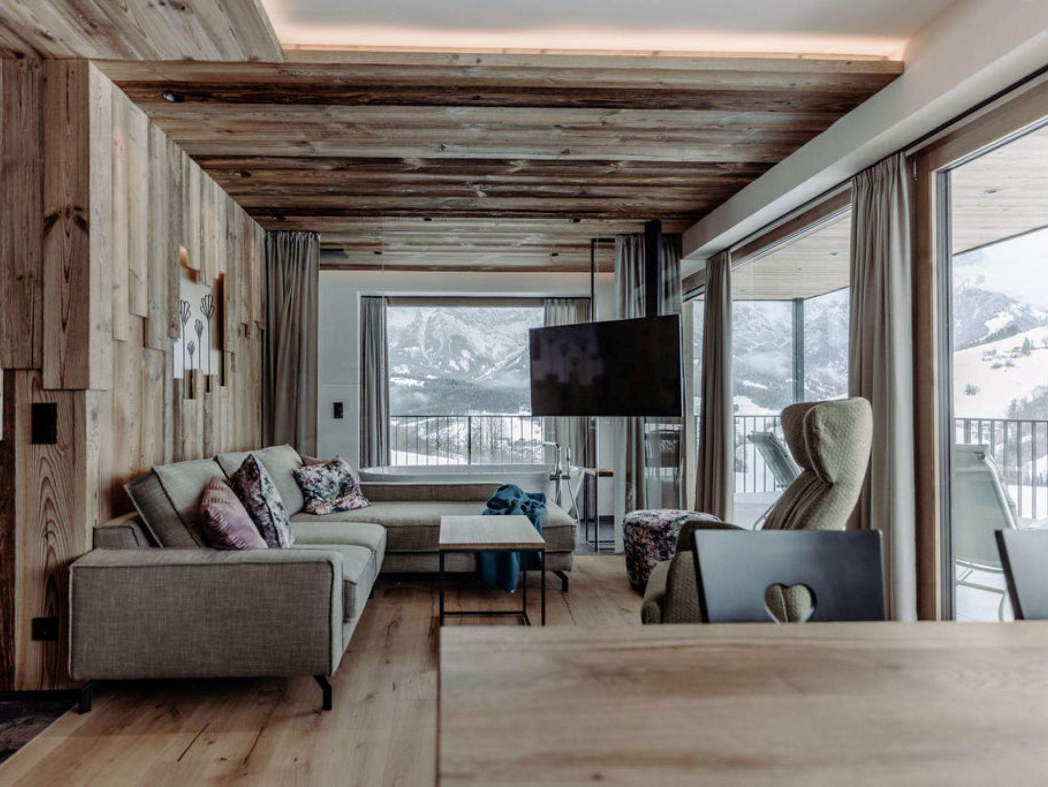Der Gipfel der Urlaubsgefühle: Von dieser Natursuite aus liegt dir nicht nur das Skigebiet Ski Amadé, sondern auch die Region Hochkönig rund um Maria Alm zu Füßen.