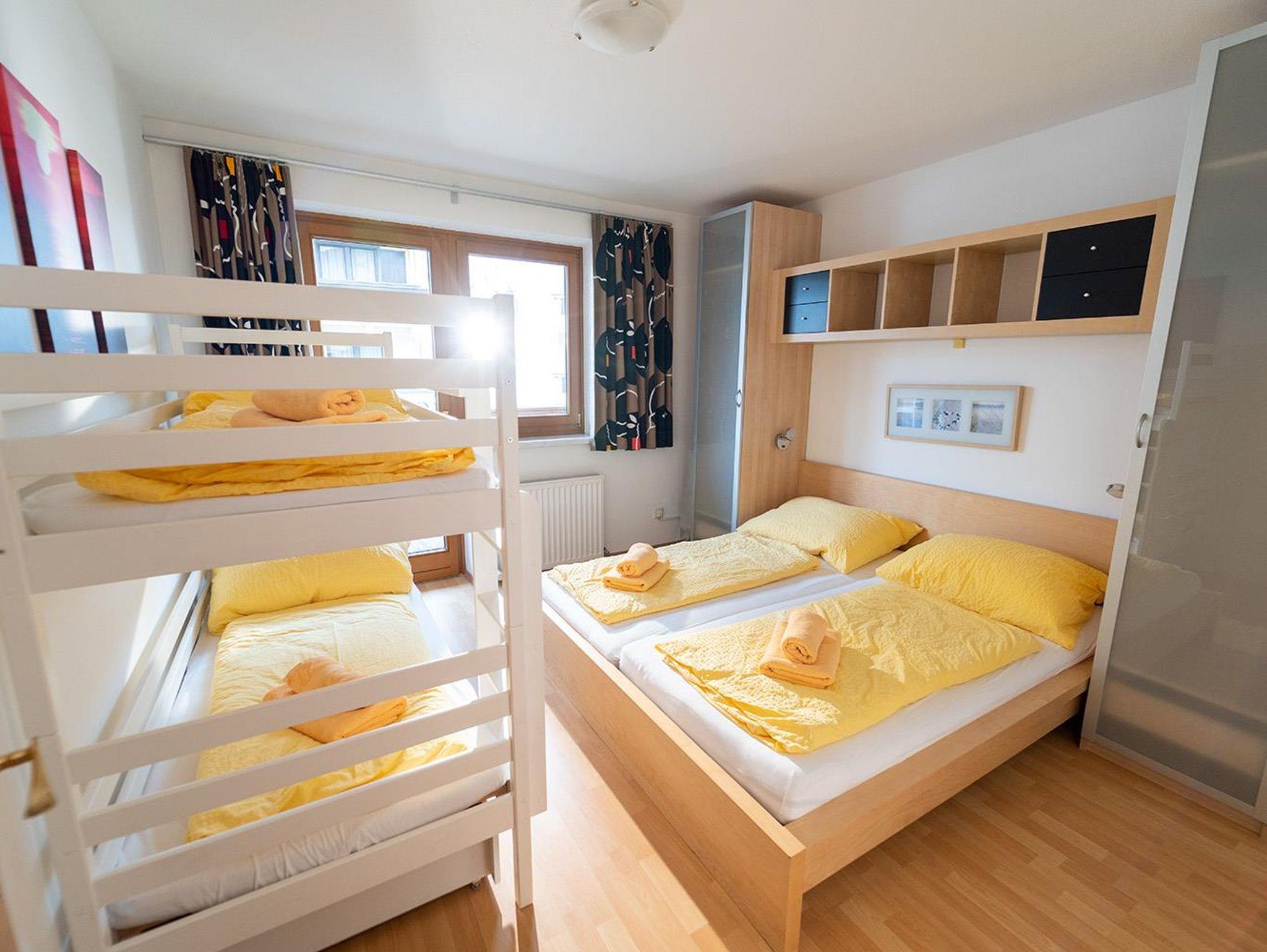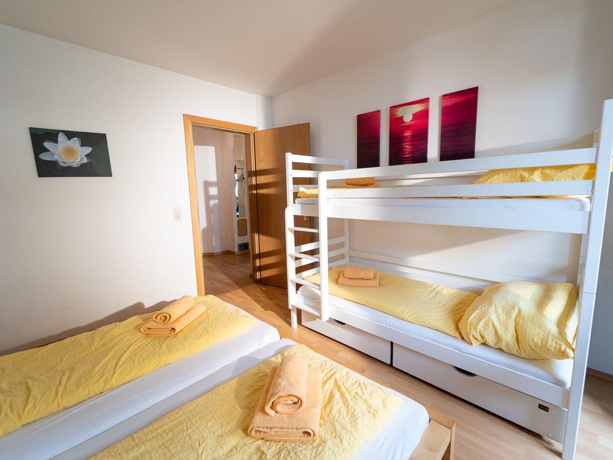 . Schlafzimmer mit Doppelbett (6er Apartments zusätzlich mit Stockbett)