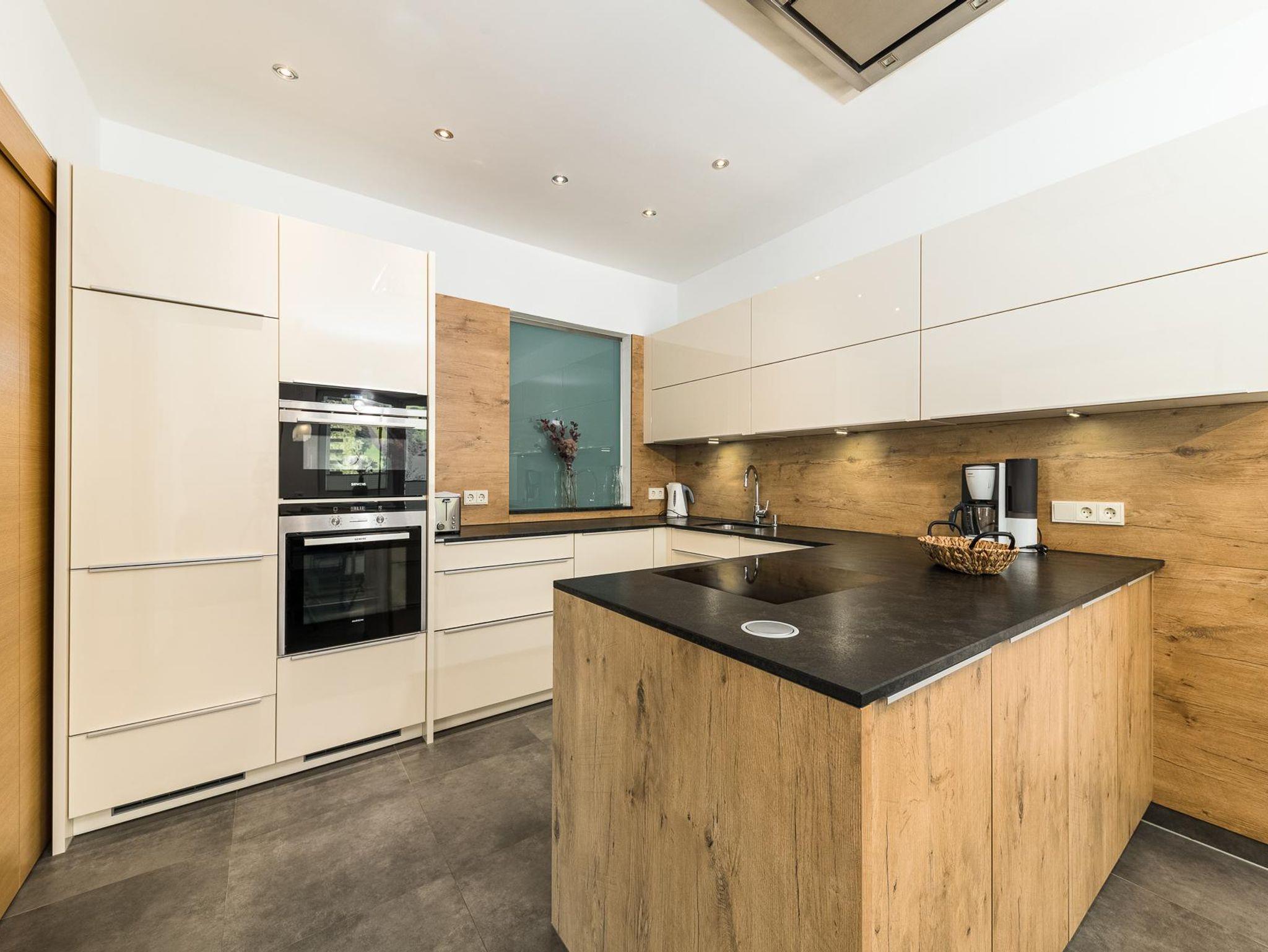 hochwertige Einbachküche mit Natursteinfläche, voll ausgestattet (Geschirrspüler, Backrohr, Mikrowelle, Herd)