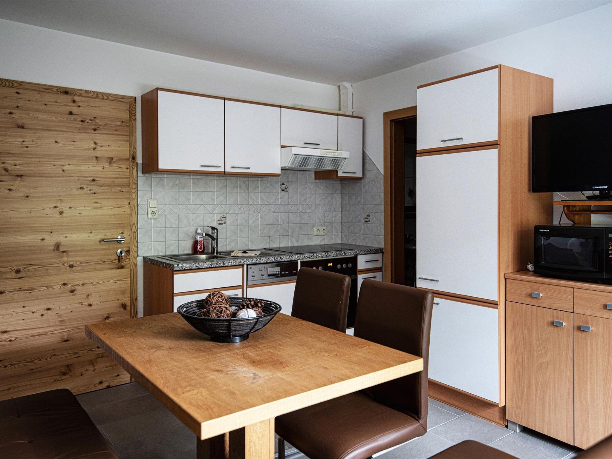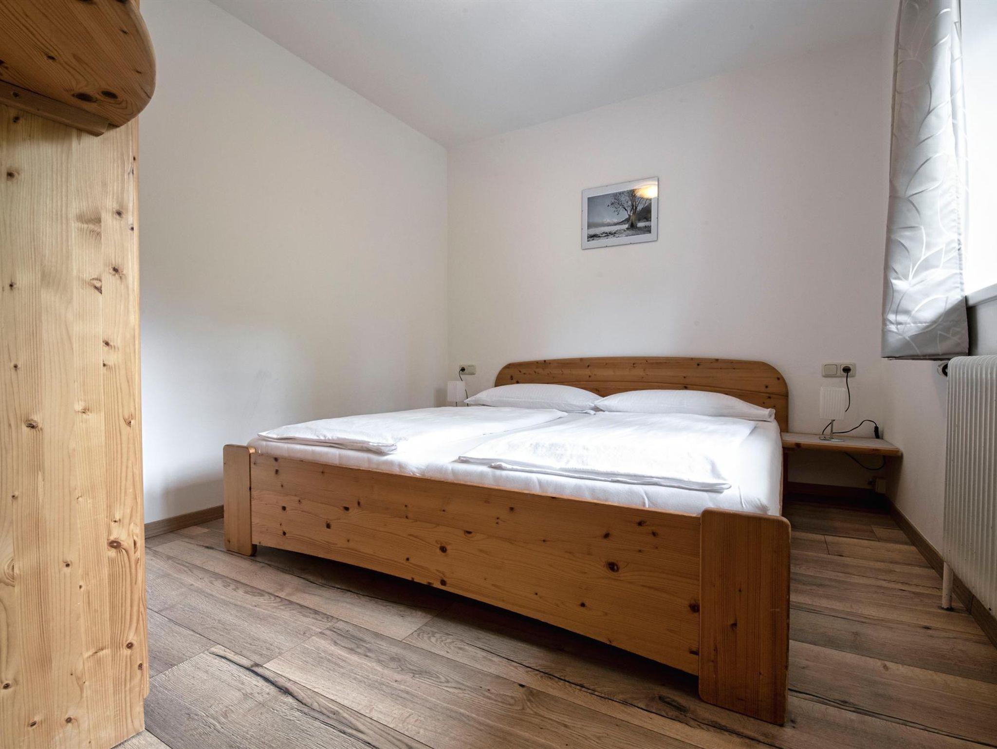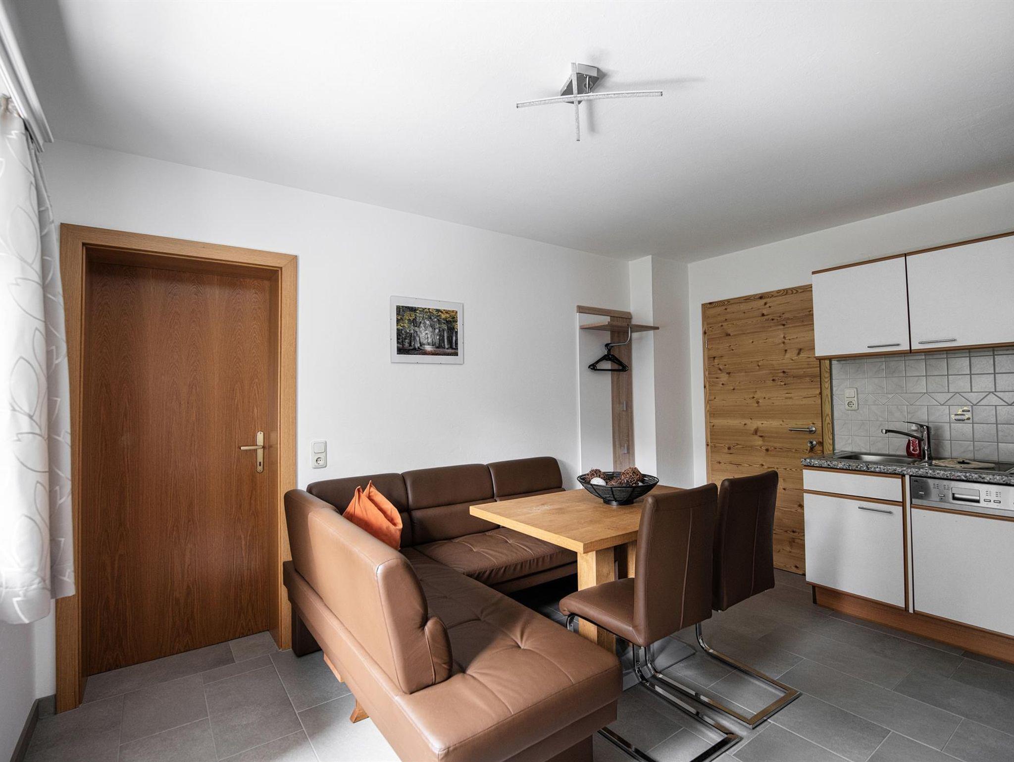 In der Wohnung befinden sich ein Schlafzimmer mit Doppelbett und einem Etagenbett (nur für kleine Kinder), ein geräumiger Wohn- und Essbereich mit großem Tisch und Kabel-TV, eine gut ausgestatteter Küche und ein Badezimmer mit Dusche und WC. Vom Schlafzimmer gelangen Sie außerdem auf den großen, sonnigen Balkon mit toller Aussicht auf den Natrun.