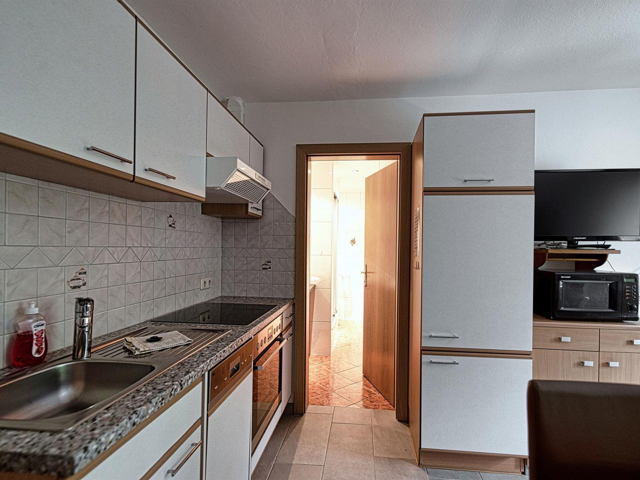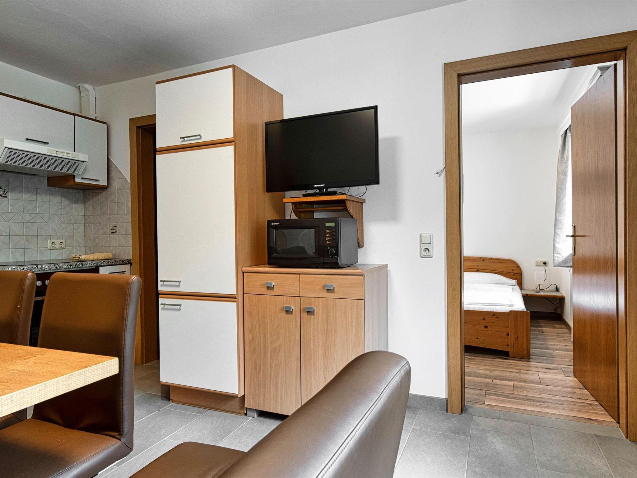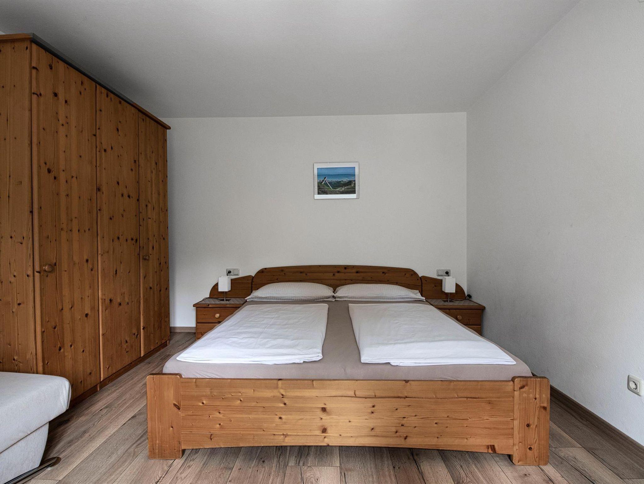 In der Wohnung befinden sich ein Schlafzimmer mit Doppelbett und einem Etagenbett (nur für kleine Kinder), ein geräumiger Wohn- und Essbereich mit großem Tisch und Kabel-TV, eine gut ausgestatteter Küche und ein Badezimmer mit Dusche und WC. Vom Schlafzimmer gelangen Sie außerdem auf den großen, sonnigen Balkon mit toller Aussicht auf den Natrun.