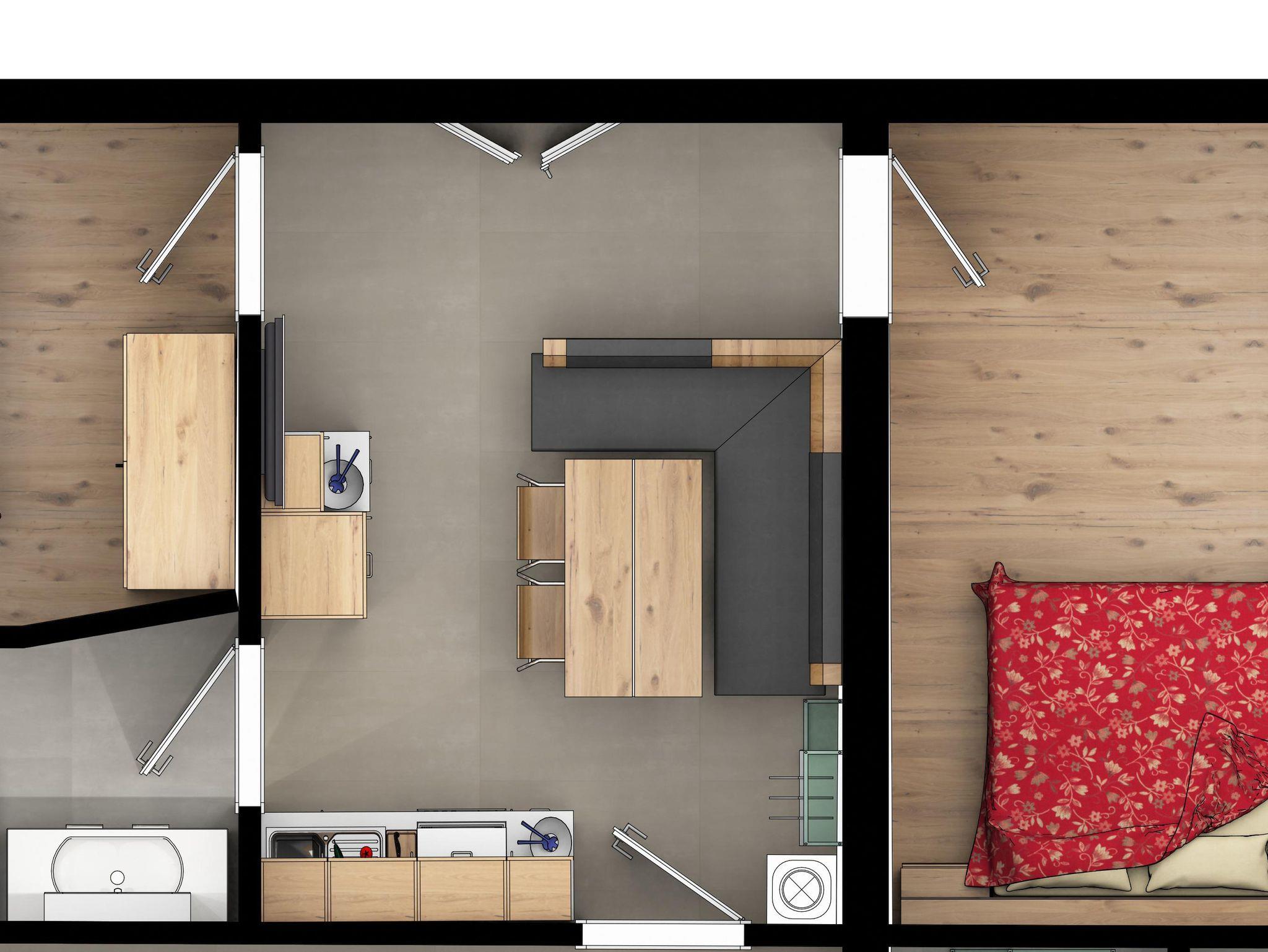 Die Wohnung verfügt über zwei Schlafzimmer mit je einem Doppelbett, einem gemeinsamen Badezimmer und einem gemütlichen Wohn-/Essbereich mit gut ausgestatteter Küche. In einem der beiden Schlafzimmer befindet sich außerdem noch eine separate Toilette. Vom Wohnbereich gelangen Sie auf den eigenen, großzügigen Balkon mit traumhaften Blick auf den Natrun.