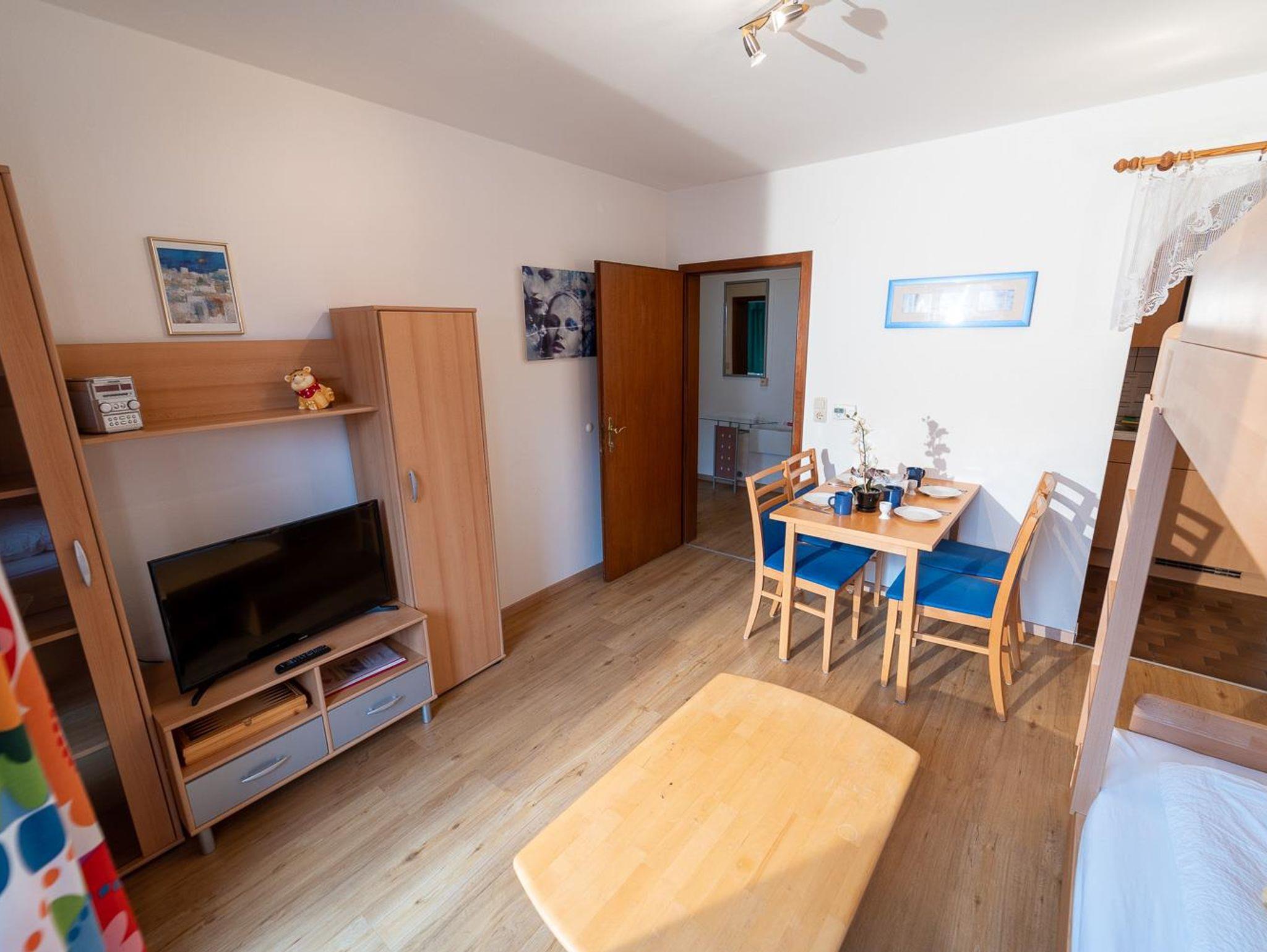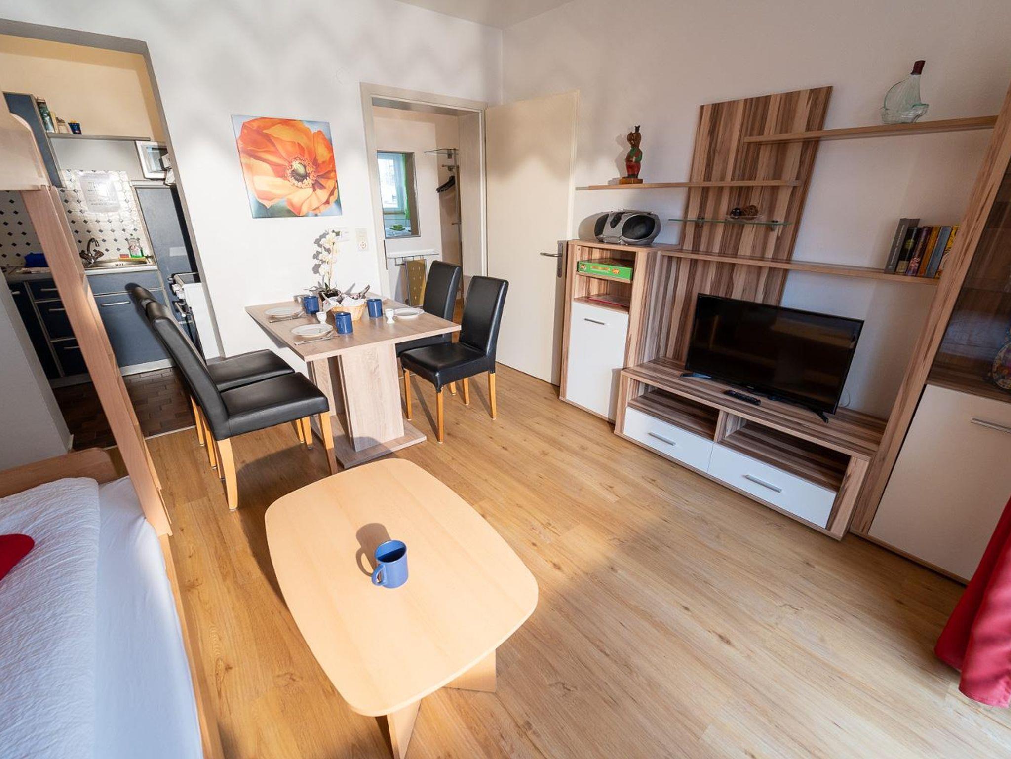 . Wohnküche mit Flexinno-Bett-System (eine Kombination aus Sitz-Couch am Tag und ausklappbar zu 1 oder 2 Betten zum schlafen) und LCD-Kabel-TV