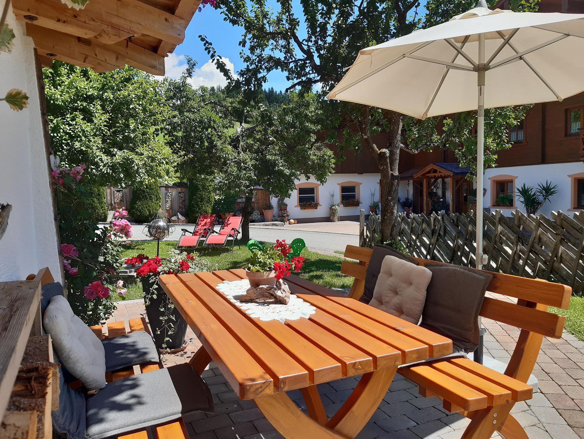 Genießen Sie die ruhige Lage und die sonnige Umgebung während Sie auf unserer grossen Liege-Spielwiese entspannen oder die Liegestühle im Garten nutzen. Für die kleinen Gäste gibt es eine Kinderspielfläche mit Schaukeln, Trampolin, Sandkasten, während die Erwachsenen die frische Bergluft auf der Terrasse genießen und eine Runde Tischtennis spielen.