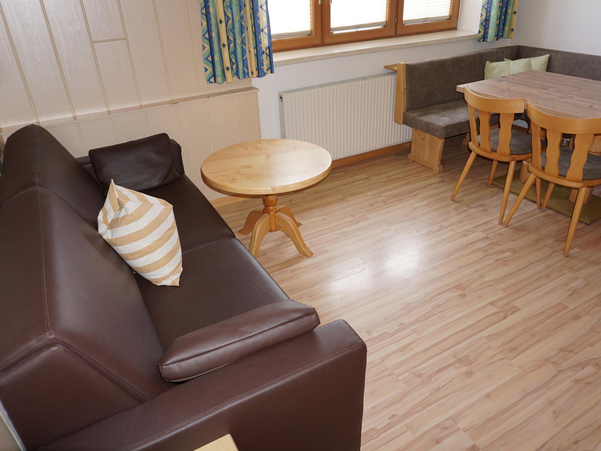 Das Appartement bietet ein Schlafzimmer mit Doppelbett und einer weiteren Schlafmöglichkeit (durch Schlafcouch gegeben), einen geräumigen und gemütlichen Wohnraum mit Esstisch und großer Couch (ausziehbar, Schlafmöglichkeit für 2 weitere Personen) - perfekt um dort gemeinsame Abende zu verbringen. Weiters: 2 WC's, Bad mit Dusche/WC und eine Wohnküche mit Küchenzeile, die zum Kochen einlädt.