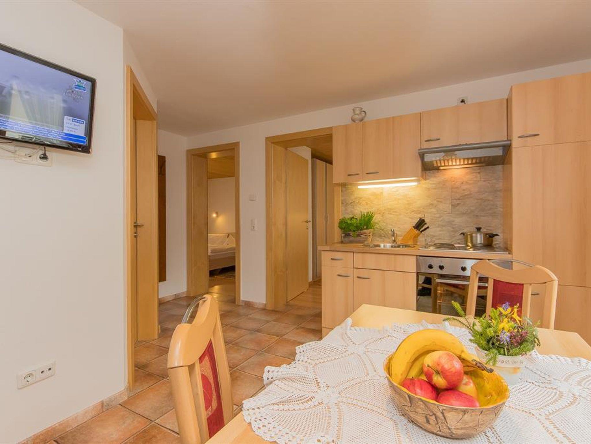 Schönes Appartment mit 2 getrennten Schlafräumen für max. 4 Personen. Badezimmer mit Dusche. WC extra. W-Lan vorhanden. Wohnküche mit Sitzecke. Balkon Südost mit Blick auf unsernen Hausberg Natrun. Balkonsitzmöbel vorhanden.