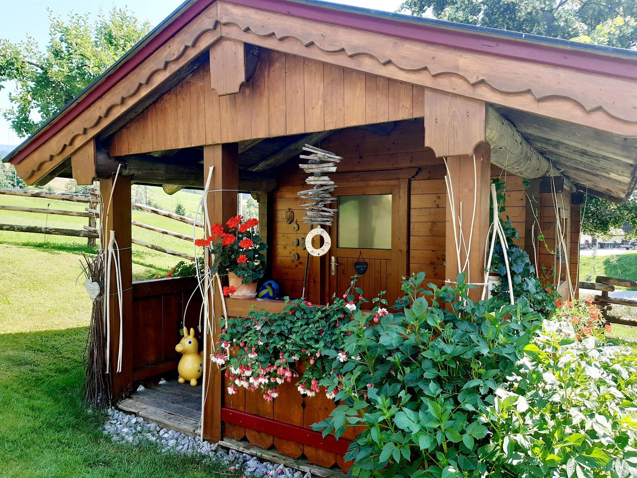 Genießen Sie die ruhige Lage und die sonnige Umgebung während Sie auf unserer grossen Liege-Spielwiese entspannen oder die Liegestühle im Garten nutzen. Für die kleinen Gäste gibt es eine Kinderspielfläche mit Schaukeln, Trampolin, Sandkasten, während die Erwachsenen die frische Bergluft auf der Terrasse genießen und eine Runde Tischtennis spielen.