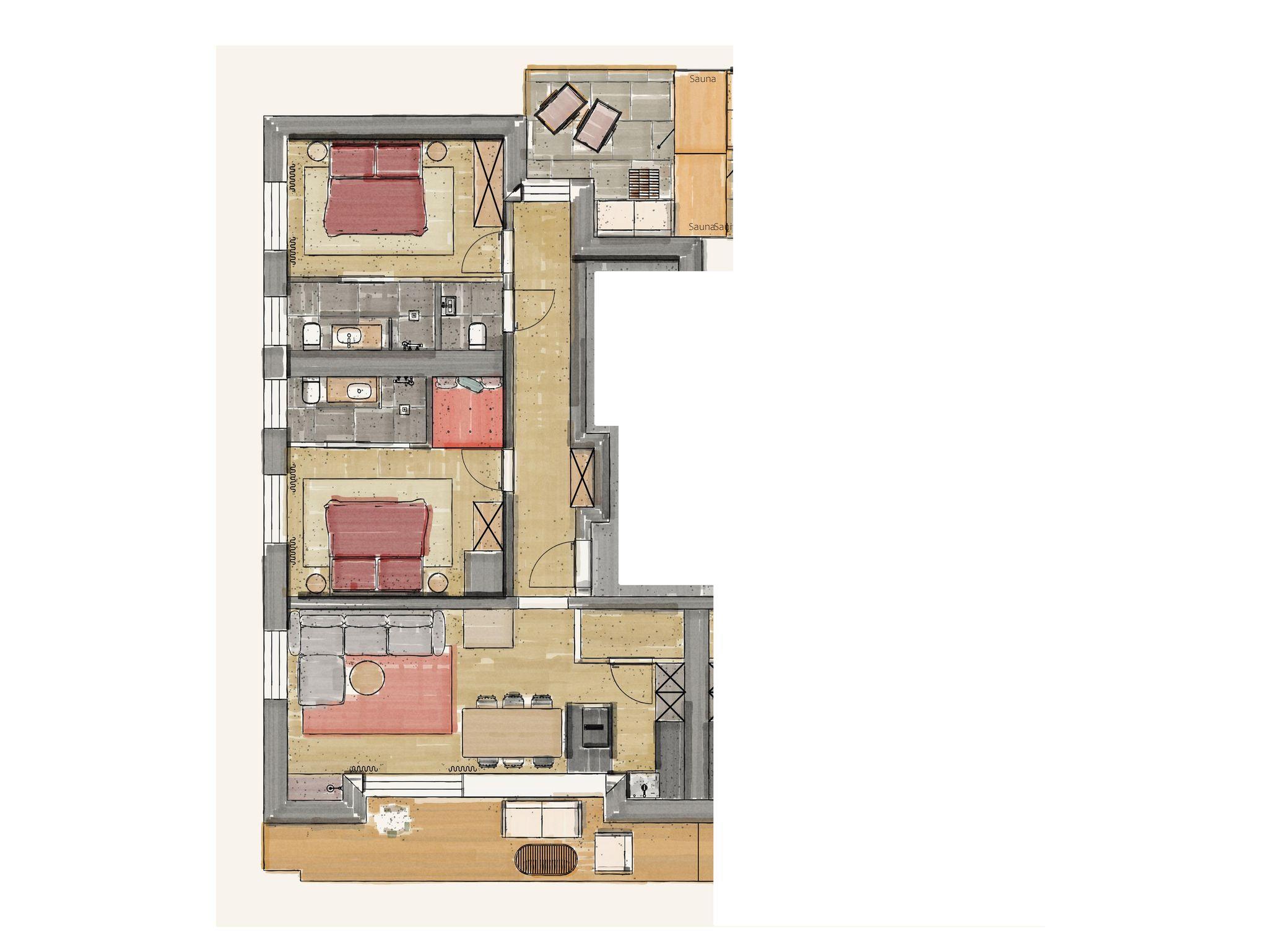 Die Wohnung Abendrot ist im Obergeschoß zur Westseite gelegen, 89m² groß 2 Schlafzimmer, 2 Bäder, tolle Küche und Wohnbereich, Terasse zum Dorf/Natrun und Aberg sowie zum Steinernen Meer. Ein toller Kaminofen trägt zum Wohlbefinden bei - die private Sauna auf der Terasse mit Blick zum Steinerenen Meer erfeut alle ab Sommer 2022.