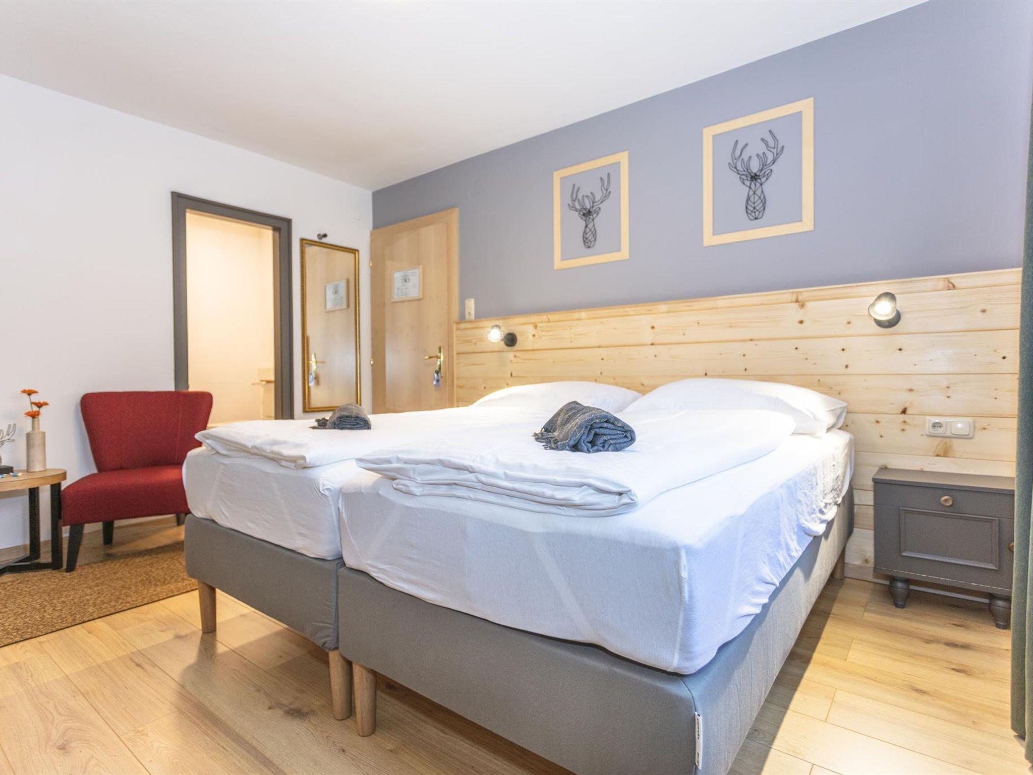 Wohlfühlen wirst Du Dich in unseren Doppel- und Mehrbettzimmern sowie in unserer Ferienwohnung.Selbstverständlich stehen gratis W-Lan und TV zur Verfügung. Zudem bieten wir unsere Zimmer in Maria Alm mit Frühstück oder Halbpension an.