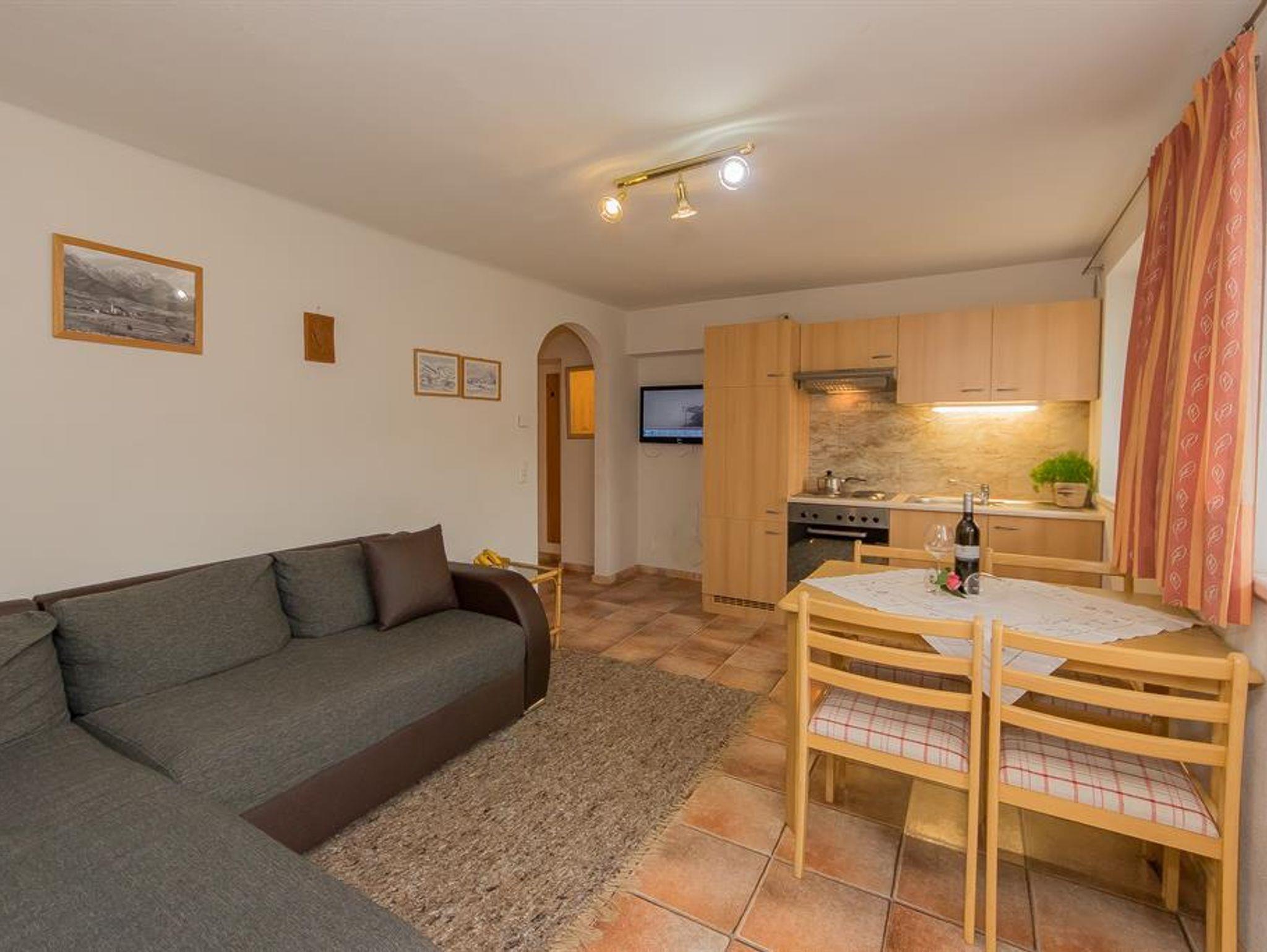 Schönes Appartment mit einem Schlafraum für max. 2-3 Personen. Badezimmer mit Dusche und WC . W-Lan vorhanden. Wohnküche mit Sitzecke. Balkon Südost mit Blick auf unsernen Hausberg Natrun. Balkonsitzmöbel vorhanden.