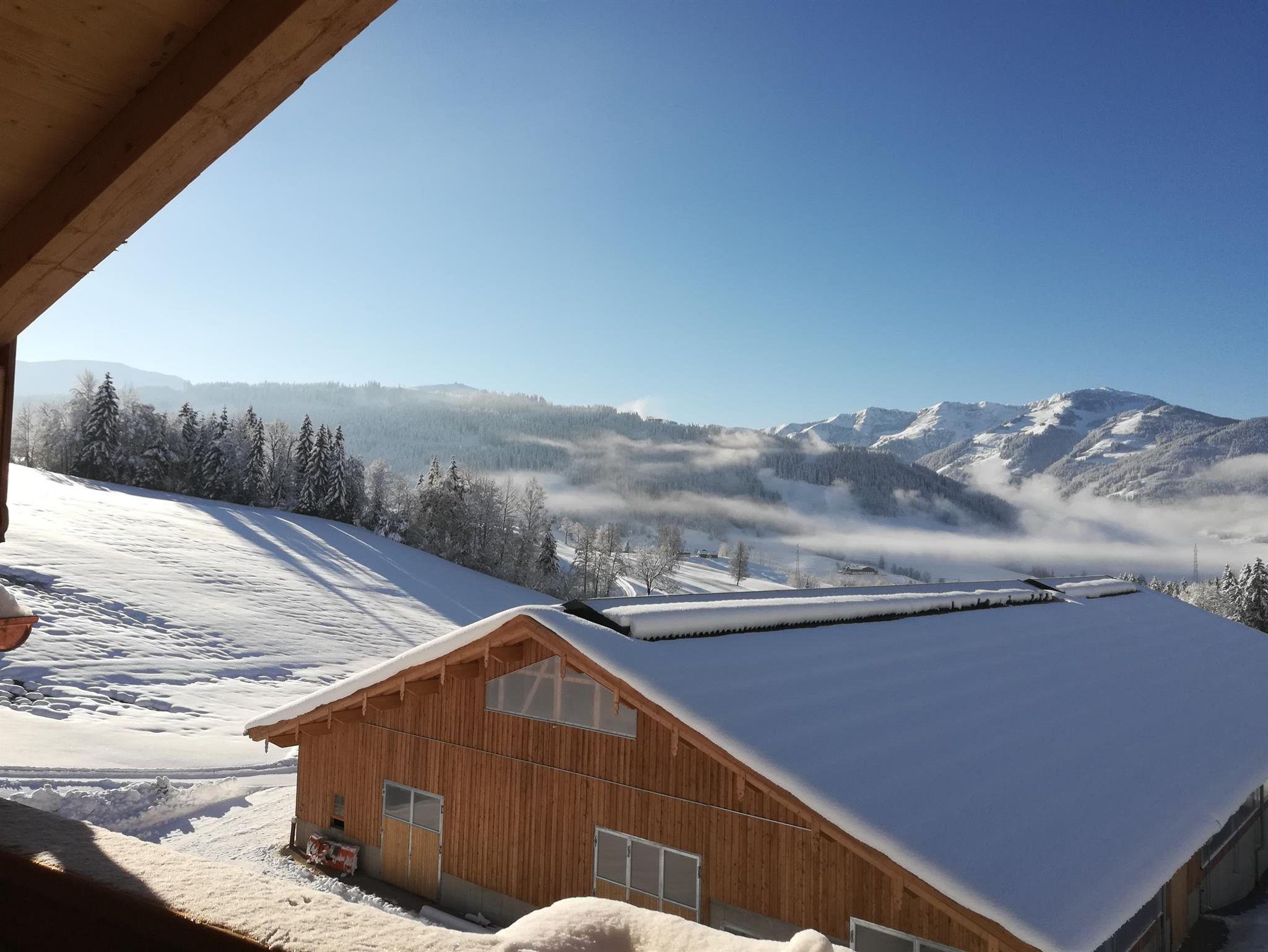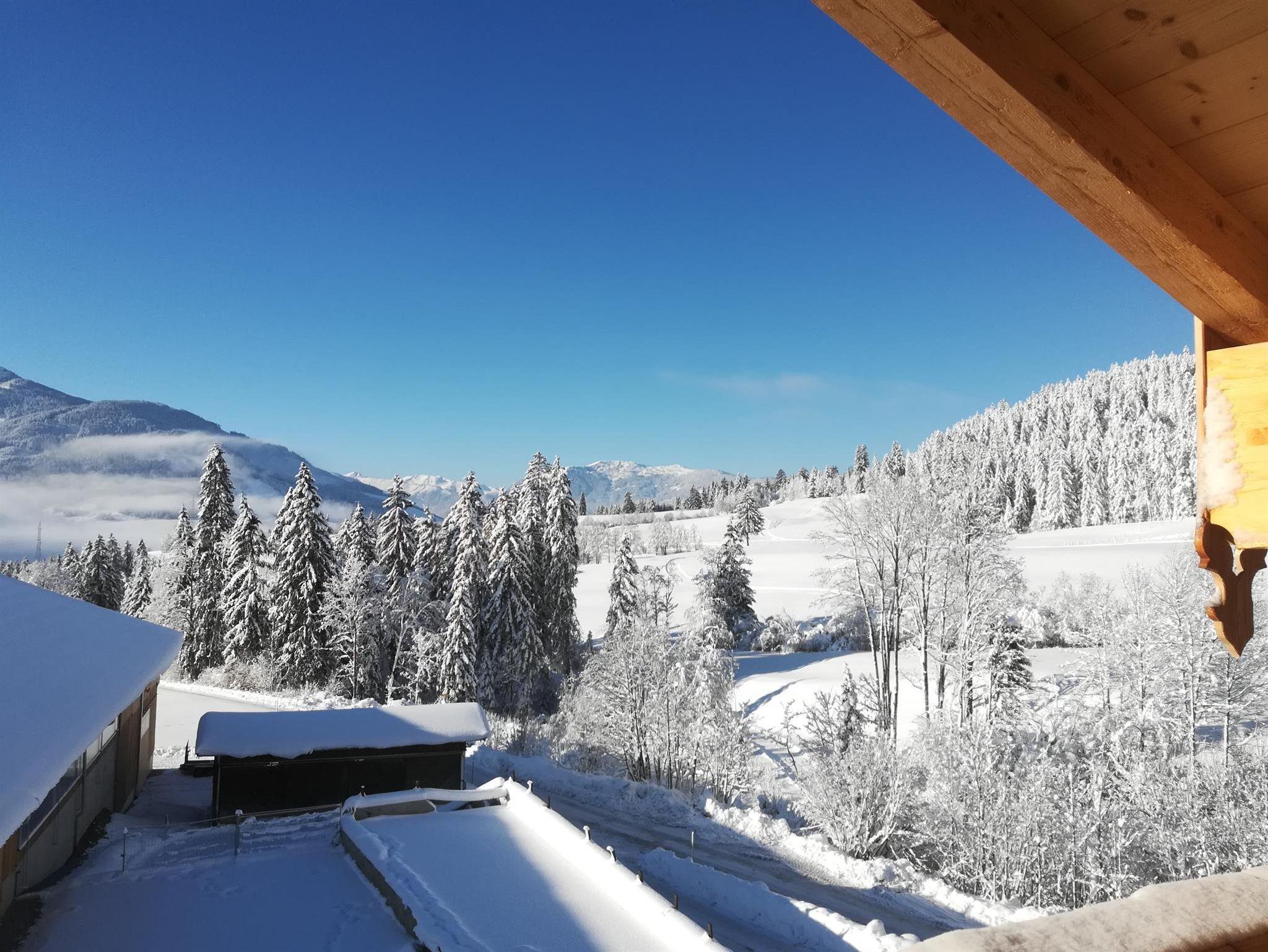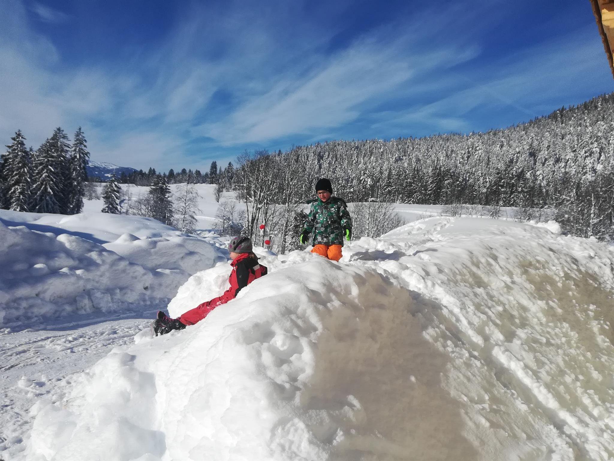 Im Winter haben wir eine kleine hauseigene Rodelbahn. Die Langlaufloipe führt direkt am Haus vorbei und der Skibus hält an unserer Hofeinfahrt.