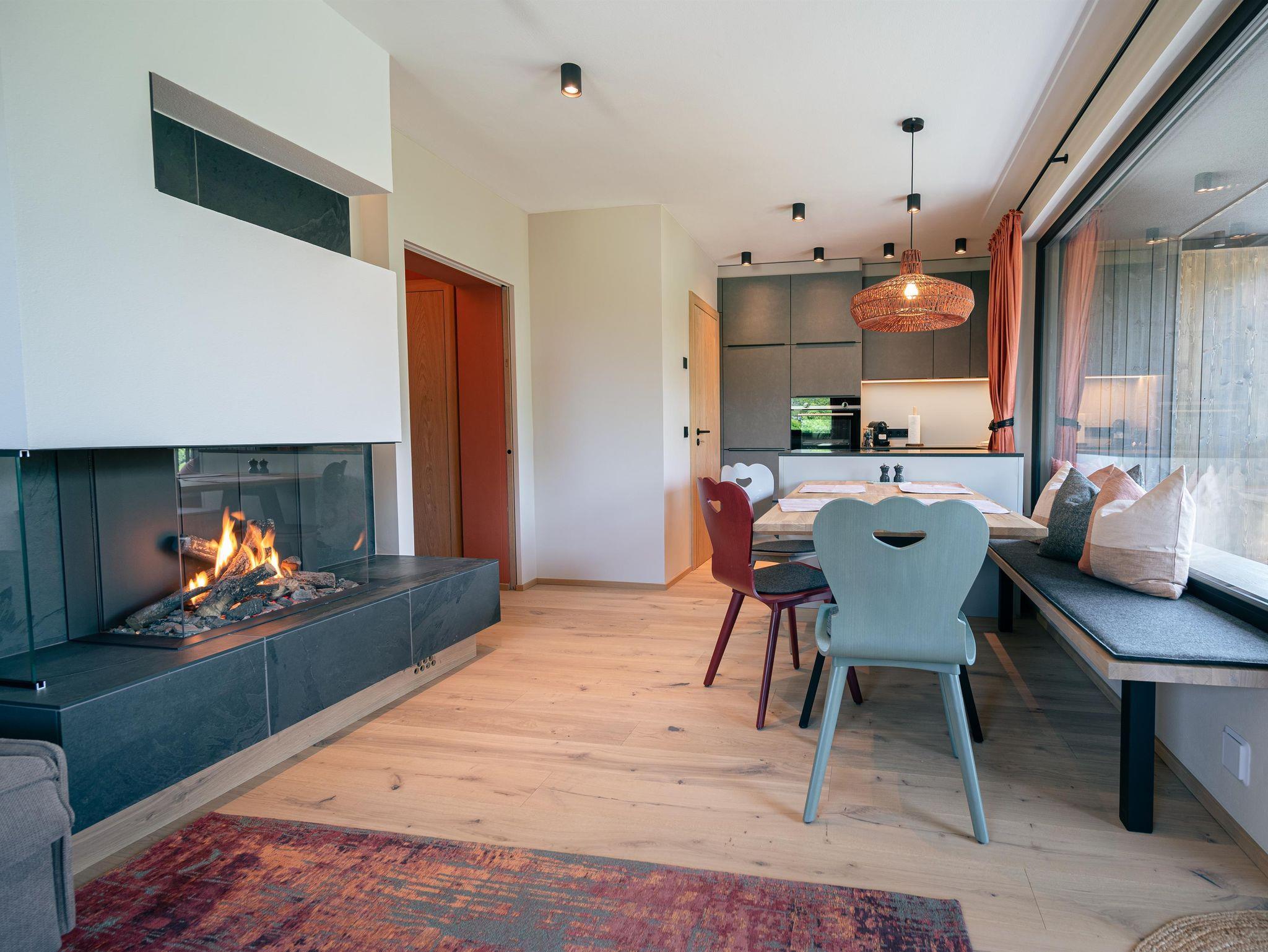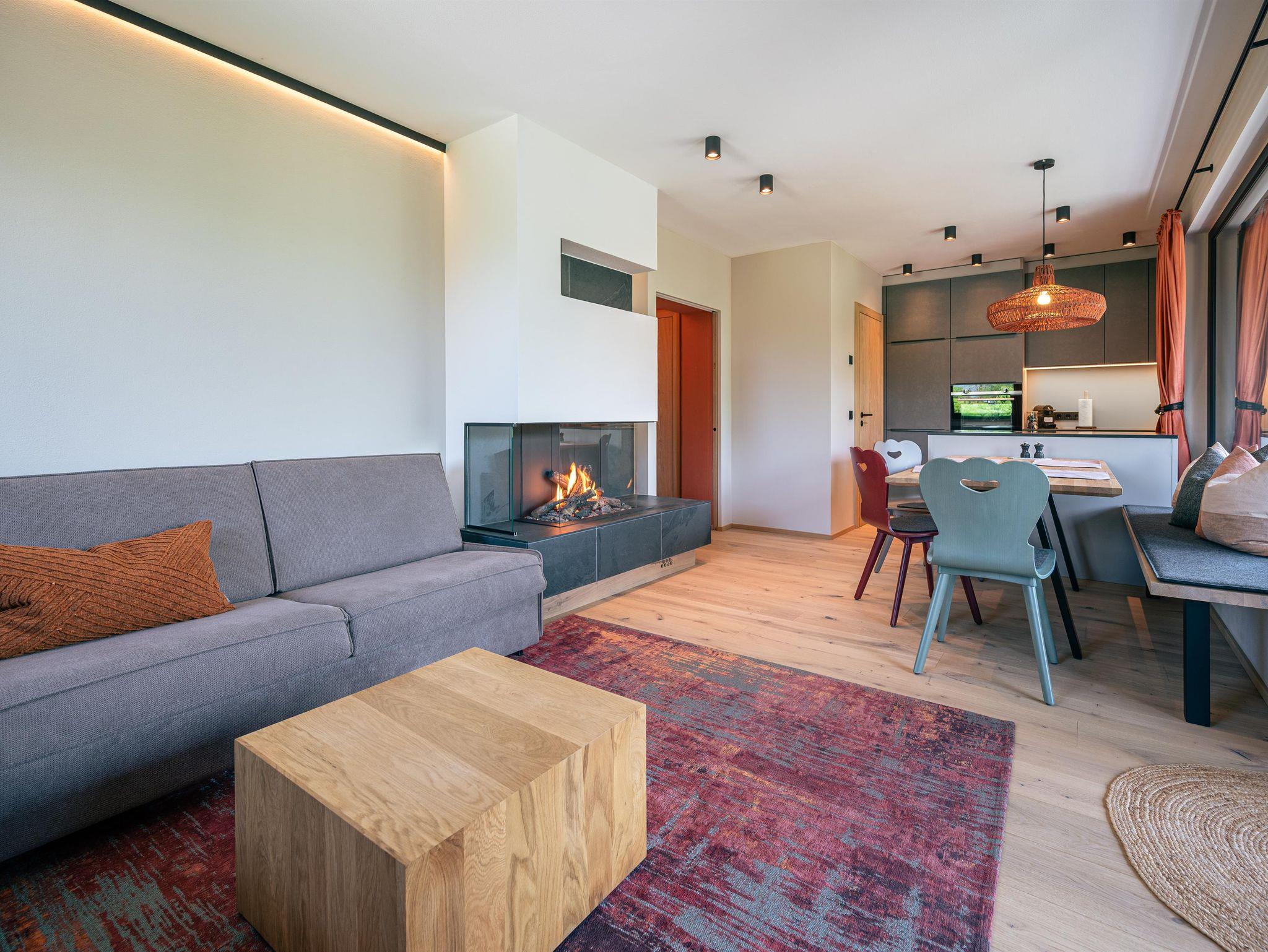 Alle Wohnungen im Haus Bergleben haben eine private Sauna im Freien mit Blick auf die Berge! Die großen Wohnungen haben zusätzlich einen tollen Kaminofen im Wohnzimmer für den Wohlfühlfaktor!