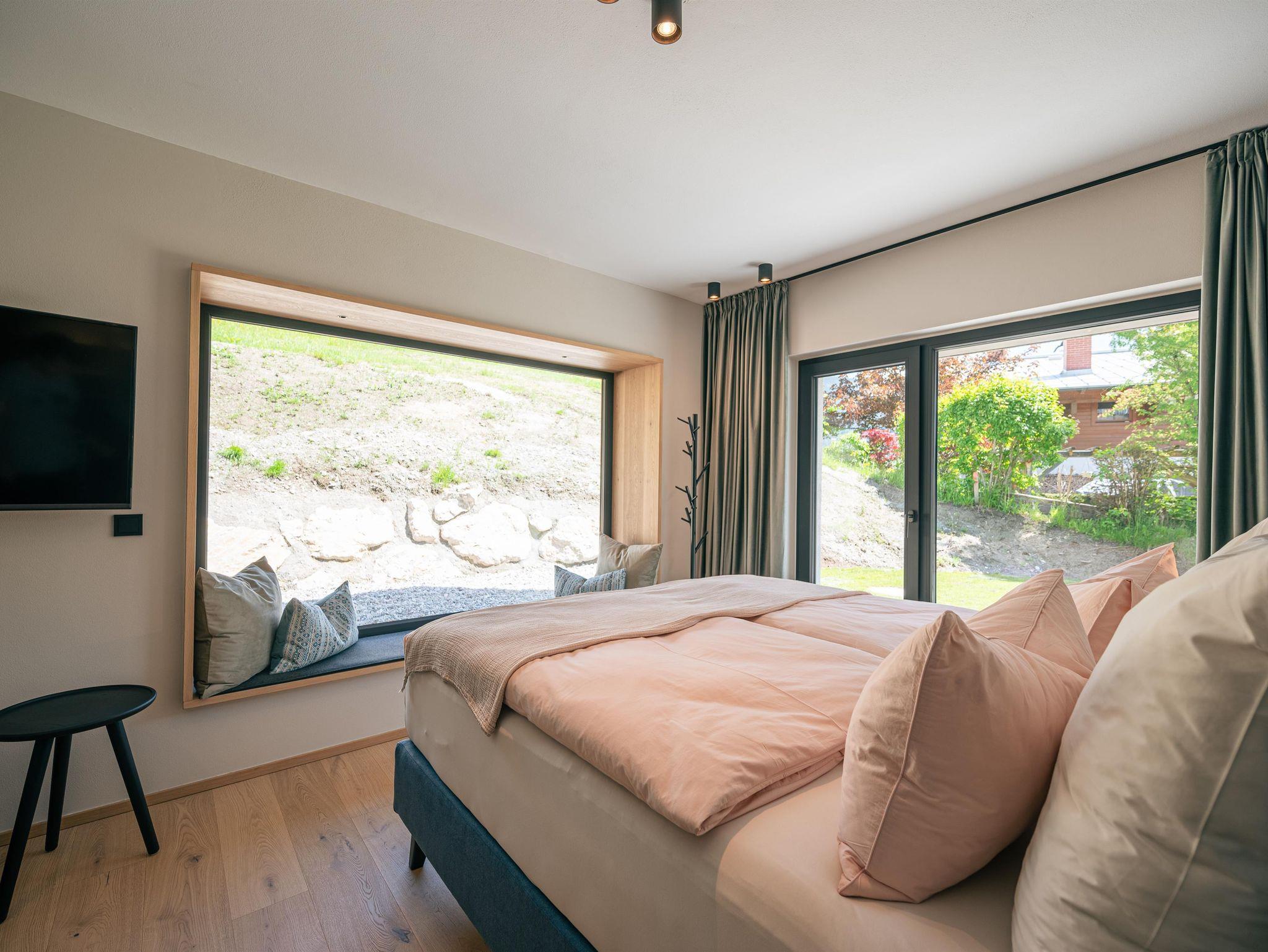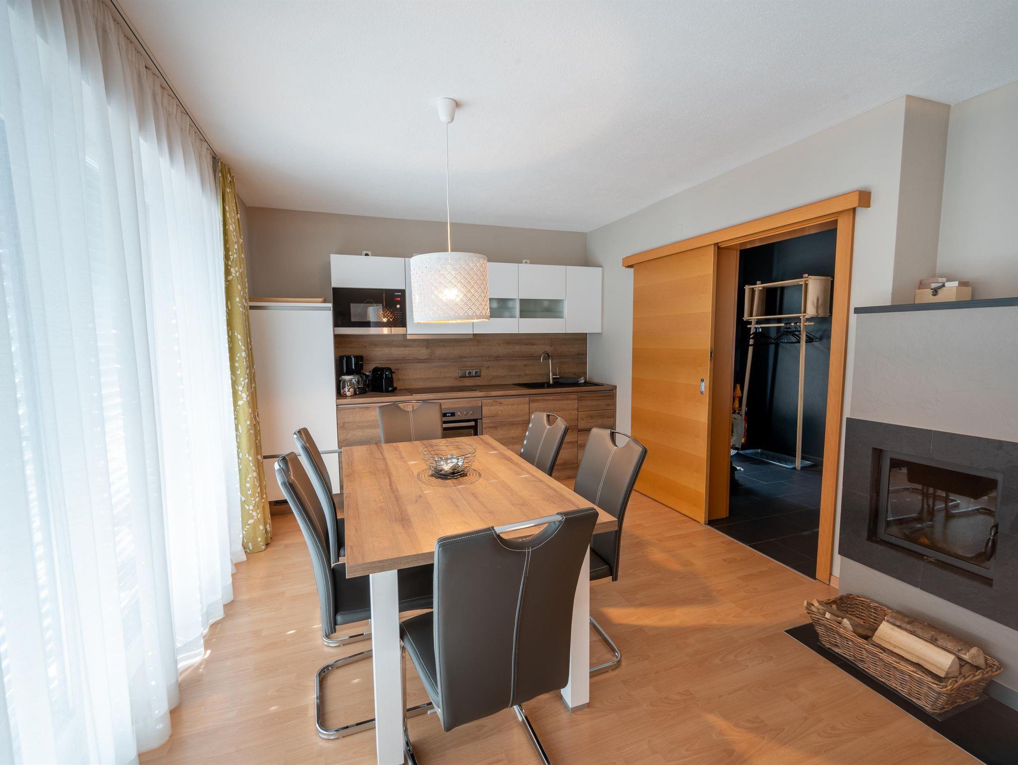 Um Ihnen den Aufenthalt unvergesslich zu machen, haben wir unsere Wohnungen exklusiv/modern eingerichtet - zum Haus passend - im Wohnraum haben Sie eine über 4 Meter breite Glasfront aufs Dorf gerichtet - neben der Couch einen dänischen Kaminofen um romantische Stunden genießen zu können. Zudem eine sehr gut ausgestattete Küche mit Kühl/Gefrierschrank, Ceranfeld, Microwelle und Geschirrspüler. Beide Schlafzimmer sind geräumig mit großen Fenstern ausgestattet, das Badezimmer und Toilette natürlich getrennt. Schiraum befindet sich vorm Aufgang zum Haus - nahe zu den Autoabstellplätzen. Diese sind direkt am Haus.