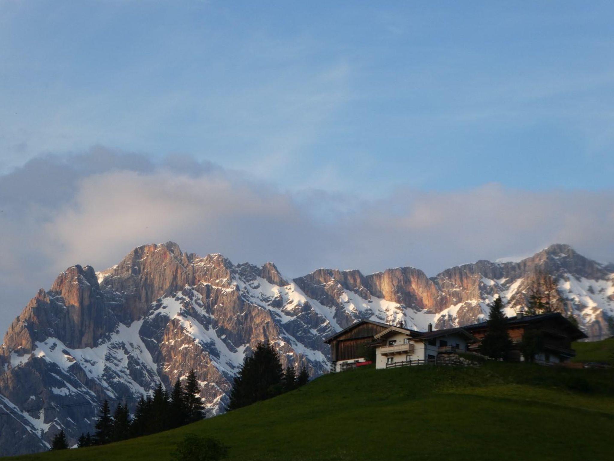 Schöne Ferienwohnung mit wundervollem Blick von der Dachterrasse auf das Steinerne Meer und auf das Hochkönig-Gebirgsmassiv. Die Wohnung verfügt über 1 Schlafzimmer mit Doppelbett und einen Wohnraum mit Sofa, TV, Küchenzeile und Essecke. Auf der offenen Galerie im Wohnraum befinden sich zwei Einzelbetten. Bad/WC, Diele mit Garderobe und Schränken.