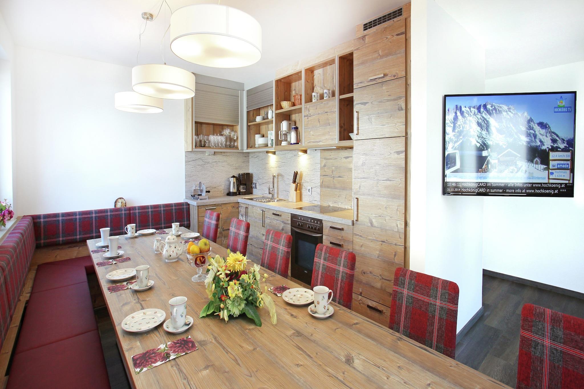 Dette smukke fritliggende sommerhus ligger i bydelen Hintermoos, som er en del af den kendte og charmerende landsby Maria Alm og Hochkönig skiområde. Dit feriehus, som du vil have helt til dig selv, ligger i første og andet gulve og har ikke færre end 7 soveværelser, 6 badeværelser og en smuk stue med åbent køkken, hvor hele din gruppe kan nyde måltider sammen. Fra den solbeskinnede balkon har du en smuk udsigt over de omkringliggende bjerge og af skiløjperne om vinteren. Uanset om du elsker skiløb eller snowboarding, er der mange skråninger (over 150 km) og moderne skilifte i Maria Alm. Når der er nok snedække, gør beliggenheden tæt på skiliften og hældningen mulighed for at stå på ski til elevatoren om morgenen og derefter skile tilbage næsten til huset om eftermiddagen. Der er også mange muligheder for langrend, slæde og vandreture, til en vinterferie med noget for enhver smag. I foråret og sommeren er dette feriehus omgivet af store grønne enge, og du kan virkelig nyde den smukke udsigt fra sommerhuset. Maria Alm byder på mange muligheder uden for vinteren og er populært året rundt. Takket være sin centrale beliggenhed er Maria Alm en ideel base for mange dagsture til Salzburg eller Zell am See, Kaprun-reservoiret, Grossglockner, Burg Hohen Werfen og "Ice of the Giants World".