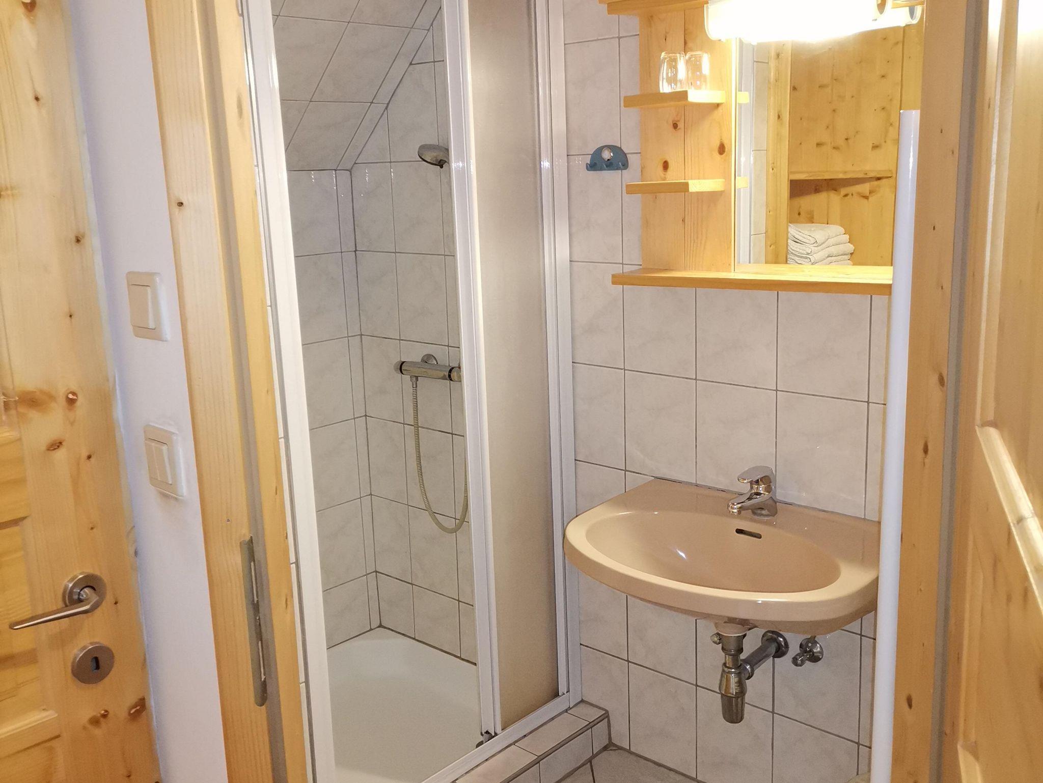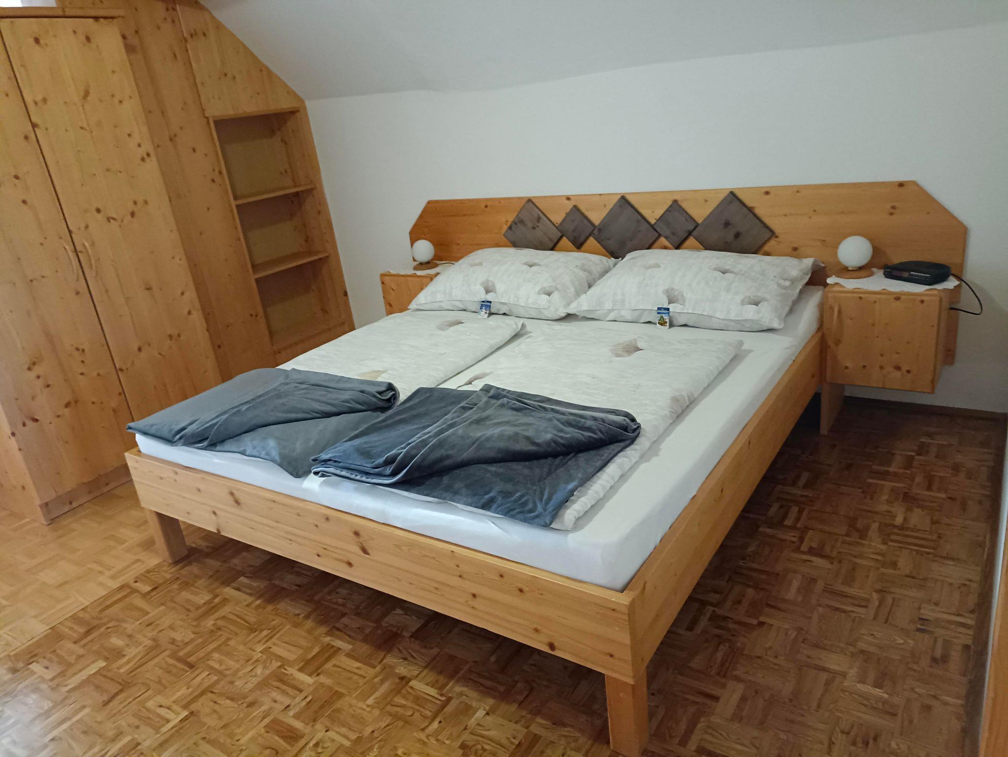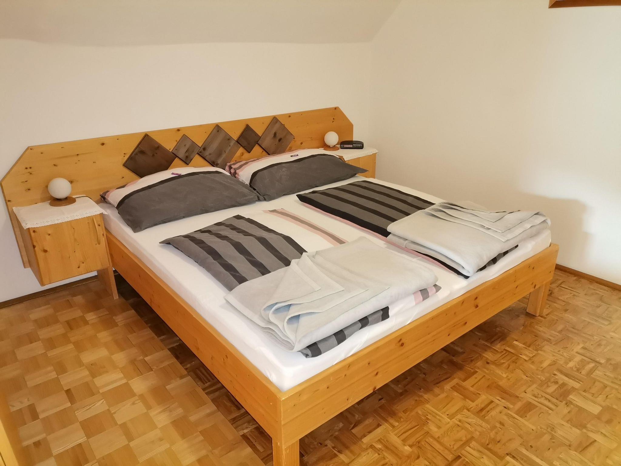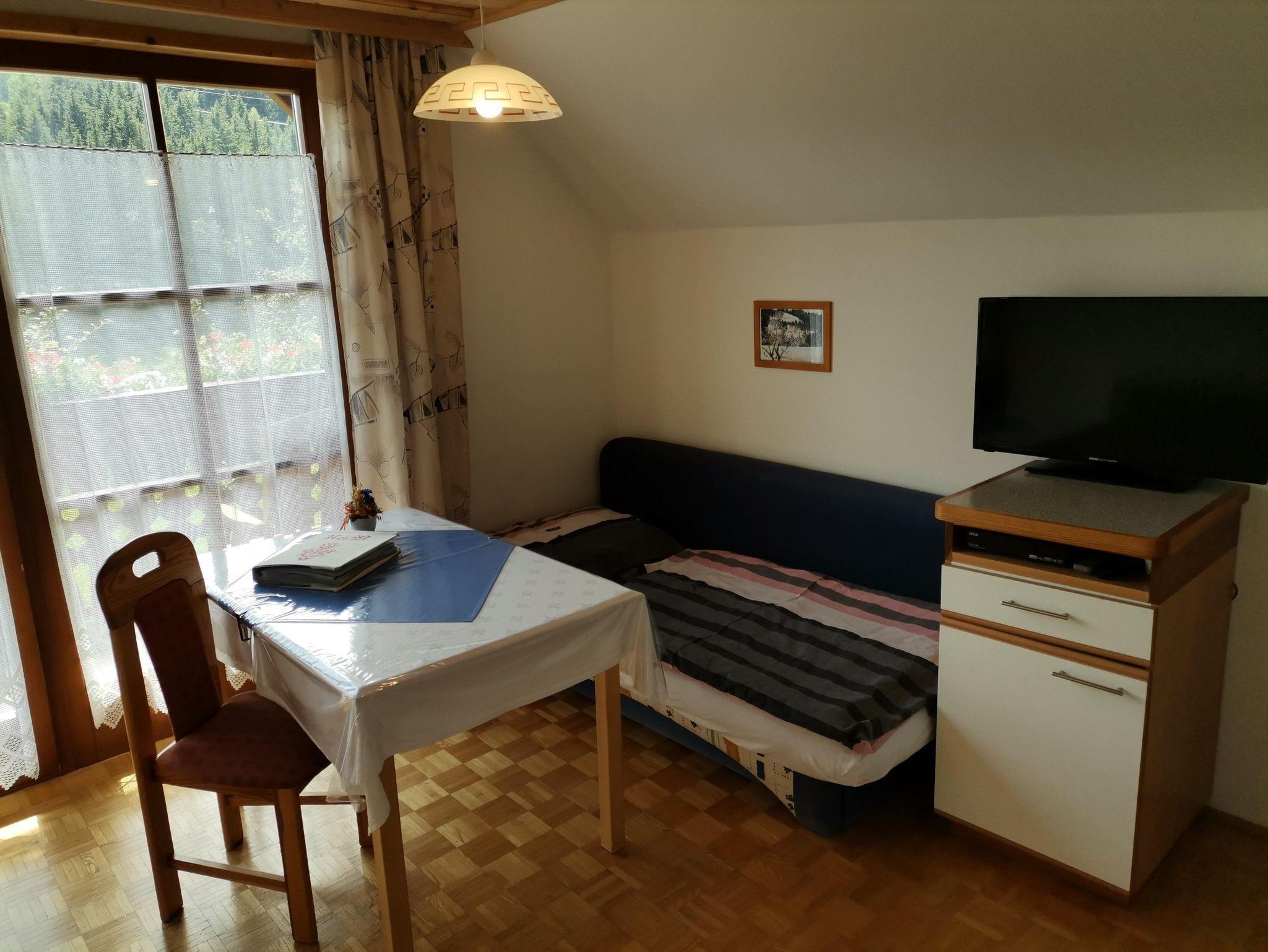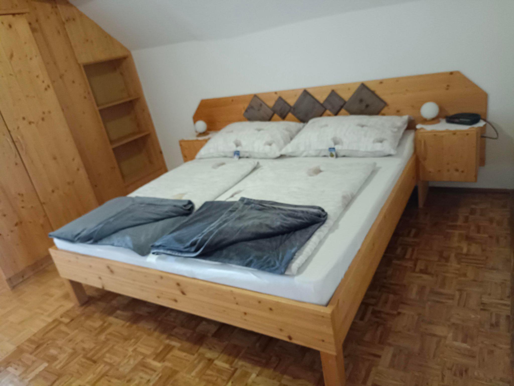 Die Einrichtung ist in Fichte gehalten und ideal auch als Familienzimmer. Sie verfügt über Sat- TV mit Blick zum Kalkberg.