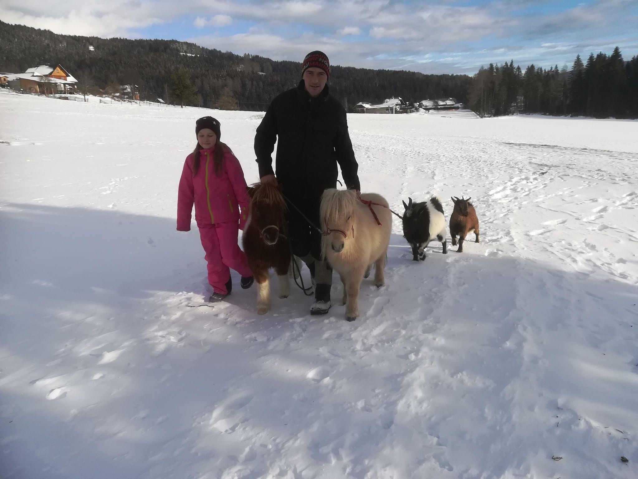 Für die Kleinen schiebt Bauer Hans schon mal eine eigene Schlittenbahn mit dem Traktor auf der Wiese direkt vor unserem Ferienhaus aus. Im eigenen Garten einen Schneemann bauen, im Schnee toben, Burgen kreieren, was gibt es schöneres für ein Kind? Bei unserem Kooperationsbetrieb Kirchnerhof (mit dem Auto 5min.) können wir gerne auf Wunsch einen Termin für Reitstunden oder Ausritte organisieren.
