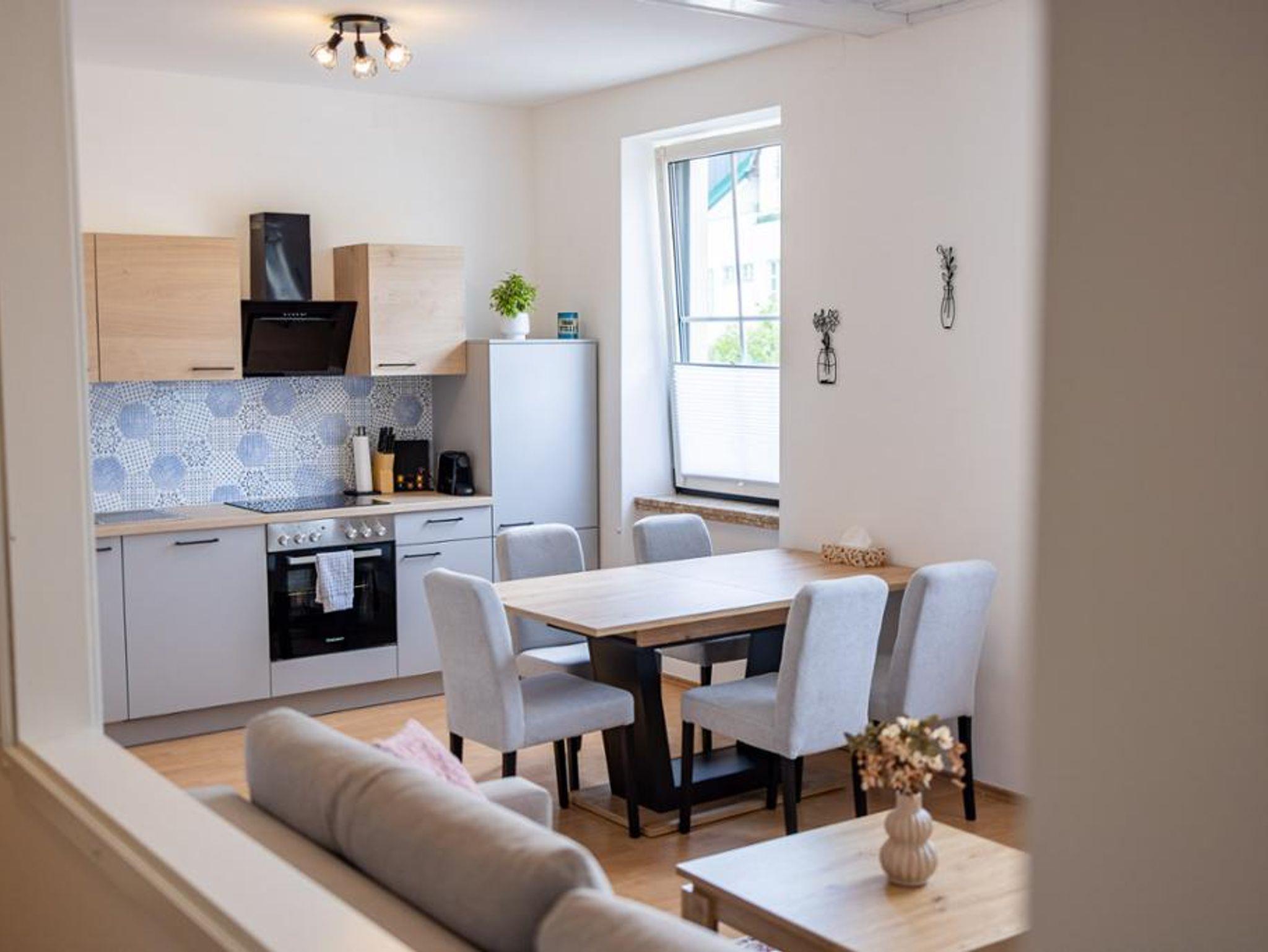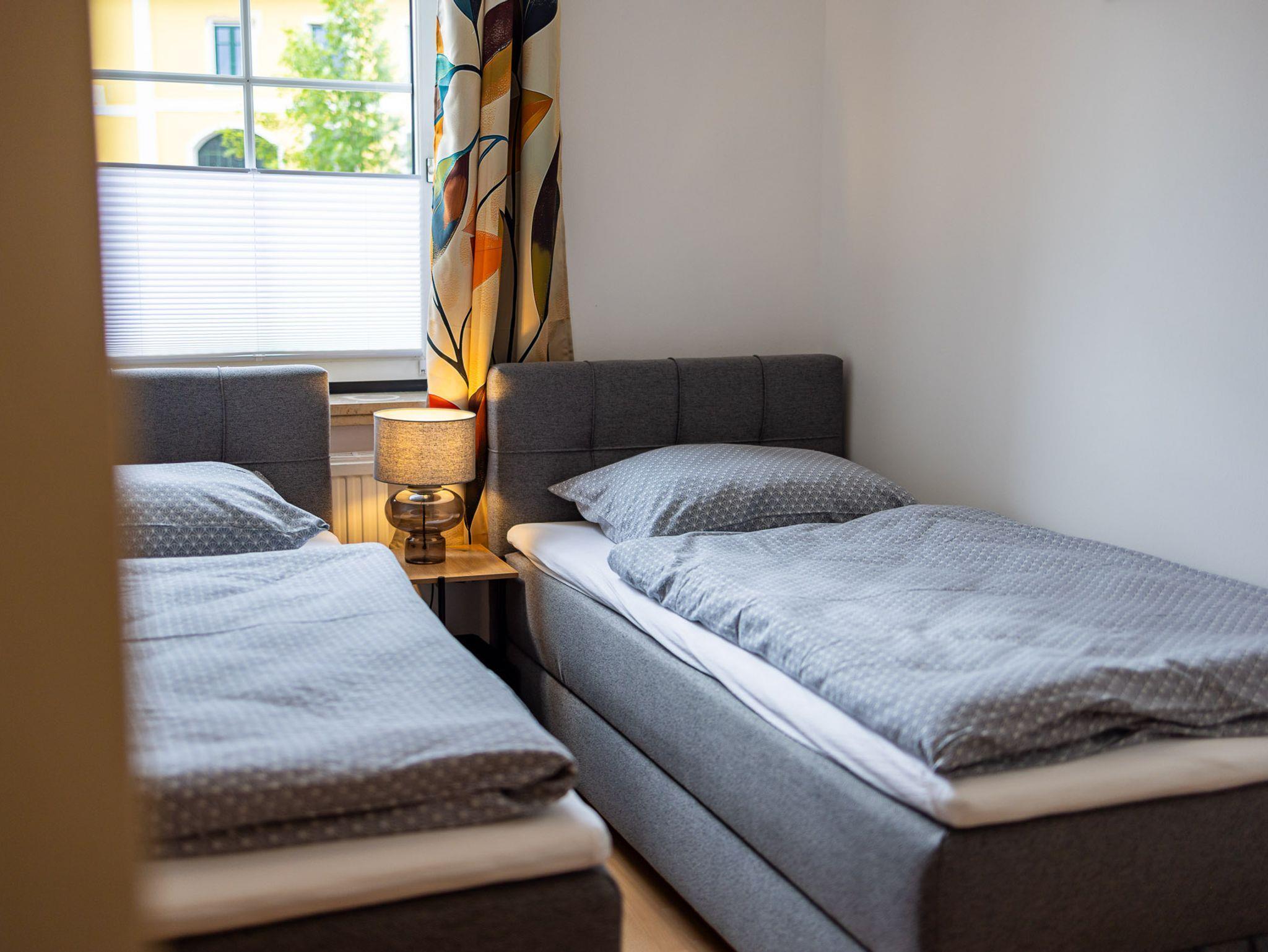 Die rund 57 m² große Ferienwohnung „Stadtblick liegt im 1. Obergeschoß und kann von 2-6 Personen bewohnt werden. Die Wohnung besteht aus zwei geräumigen Schlafzimmern mit komfortablen Boxspringbetten, einem Wohn-/Esszimmer mit ausziehbarem Schlafsofa und voll ausgestatteter Küchenzeile, einem Vorraum mit Garderobe und Schminktisch sowie einem Bad mit Dusche und separatem WC. Das Appartement ist mit allen Annehmlichkeiten ausgestattet.