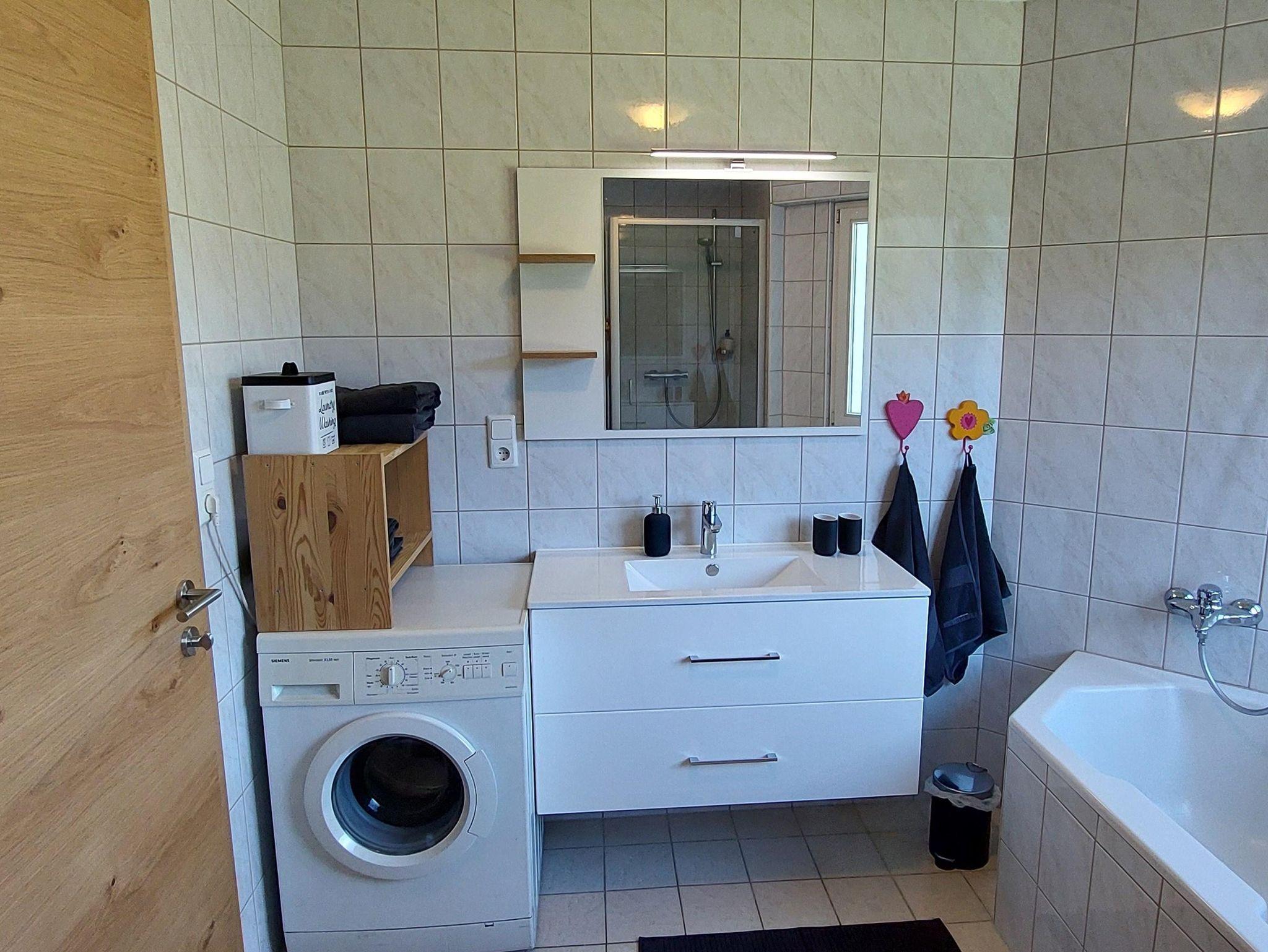 Abstellmöglichkeit von Fahrrädern und Skiiern im Keller.