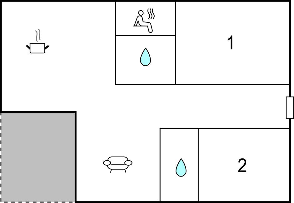 Opholdsstue/køkken - 1 Soveplads. (Sofa, madras eller lignende).