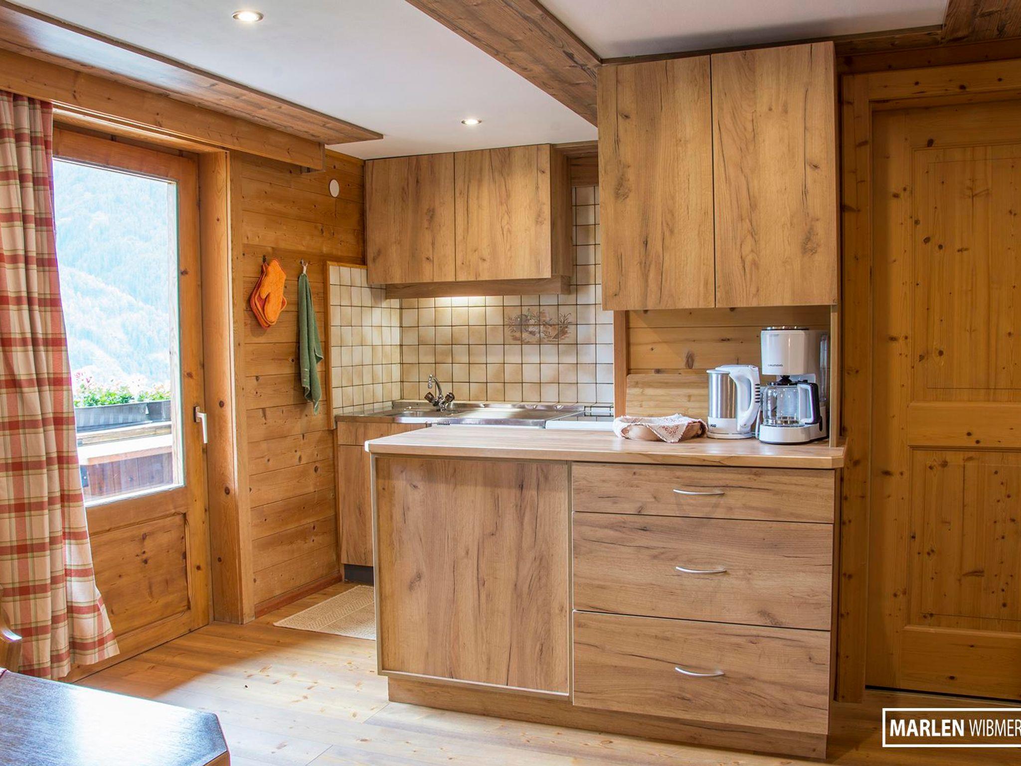 Fewo Matrei ist ausgestattet mit Wohnküche (neuem Küchenblock) u. Südbalkon, neu renovierter Dusche/WC, Doppelbettzimmer mit dahinterliegendem Dreibettzimmer, im rustikalen Stil mit viel Holz, Garderobe und Abstellraum. Koch-,u. Tafelgeschirr, sowie Handtücher, Föhn und Bettwäsche sind ausreichend vorhanden.