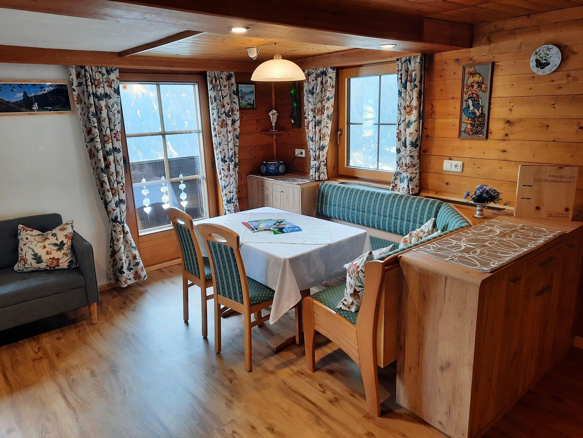 Gemütliche teilweise aus Holz angefertigte Fewg mit herrlichem Ausblick vom Balkon auf die wunderbare Bergwelt und den schöngelegenen Ort Matrei. 1 Wohnküche mit ausziehb. Couch mit Balkon 1 DZ + Zusatzcouch 1 Zusatzz. mit FLW 1 Dusche/WC
