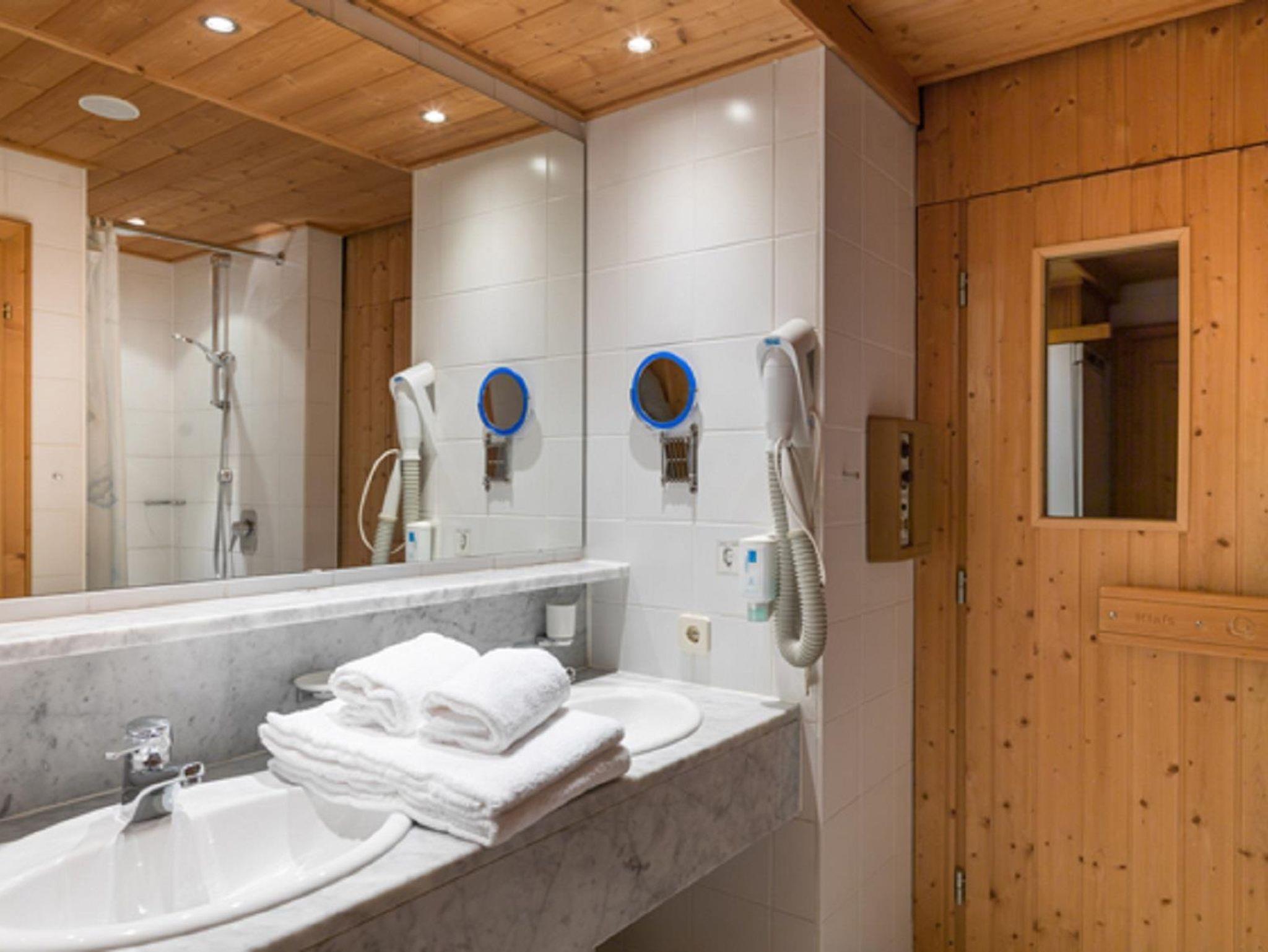 Schlazfzimmer, Wohnraum mit Ausziehcouch für die 3. und 4. Person, Vorraum, Bad, separates WC, eigene Sauna, Sitzecke, Kochnische, Geschirrspülmaschine, SAT-TV, Radio, Telefon, Balkon oder Terasse, Kleidertrockenschrank, kostenloses Internet