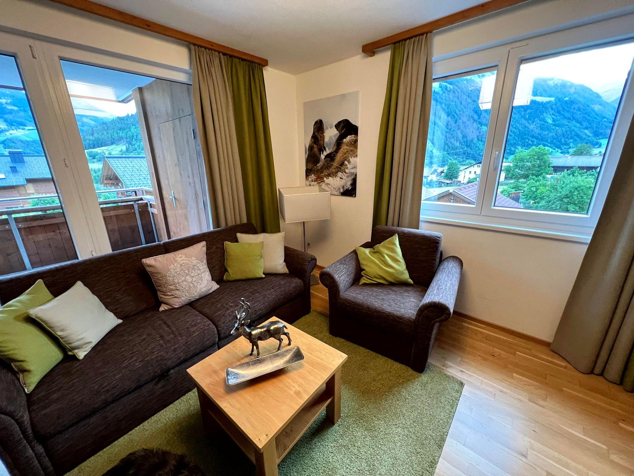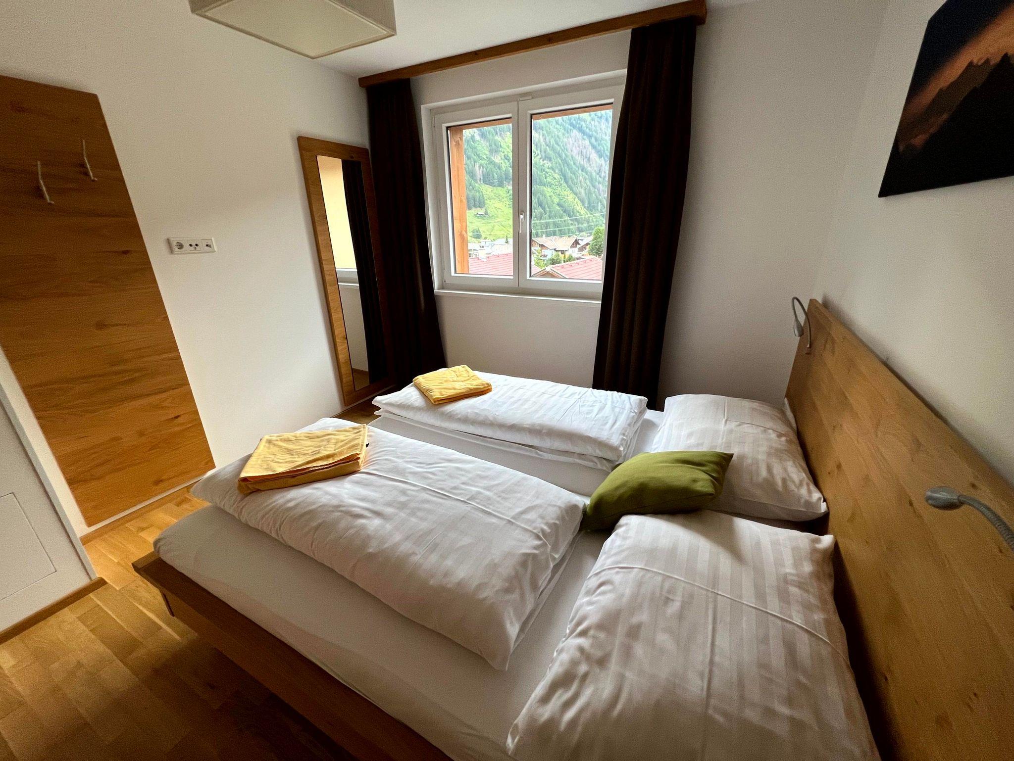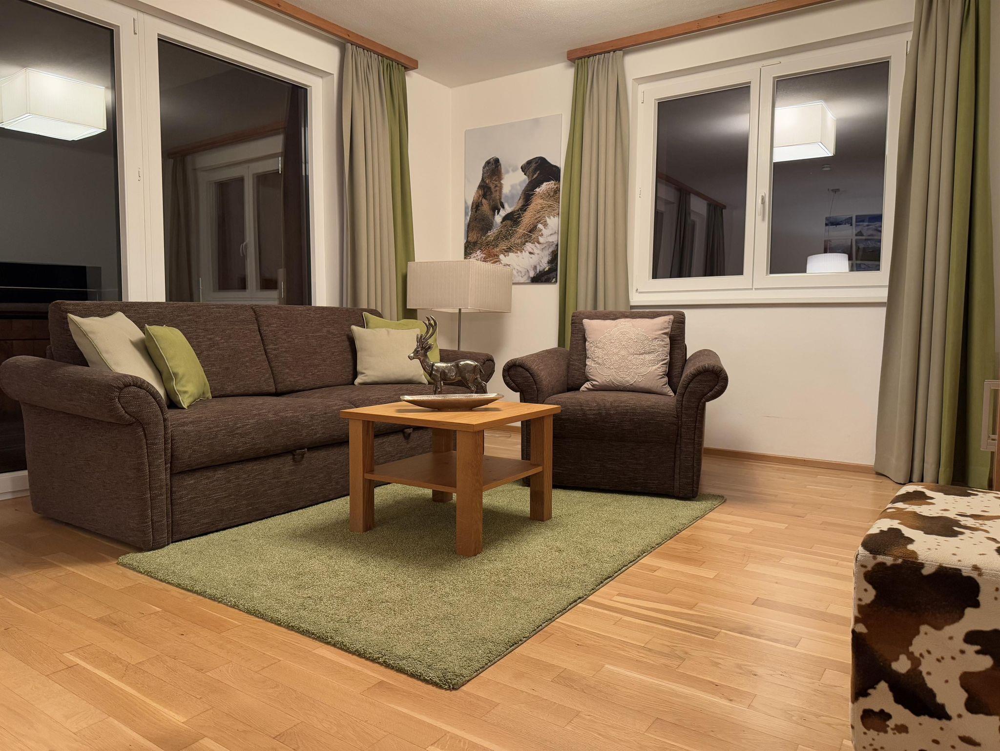 Luxuriöse Ferienwohnung im Alpin Park Matrei, einem parkähnlichen Anwesen im Lodge-Stil, zentral und ruhig gelegen. Voll ausgestattet, >70 qm, bietet Platz für 4 Personen (Normalbelegung). Großzügiger Wohn-/Essbereich, Küche, großer Balkon, 2 Schlafzimmer, 2 Duschbäder. Exklusive Holzmöbel, gemütliche Couchgarnitur, Fußbodenheizung, vollständige Küchenausstattung (Herd, Spülmaschine, Waschmaschine, Mikrowelle), SAT-TV, WLAN. Überdachter SW-Balkon, herrlicher Blick auf das Virgen- und Taurertal. Beheizter Außenpool für Alpin Park Gäste von 01.06 bis 15.09 (wetterabhängig). Zustellbett für 1 Kind auf Anfrage verfügbar. 1. Stock, Aufzug von der Tiefgarage mit Parkplatz. Kurzer Fußweg zur Skibushaltestelle.