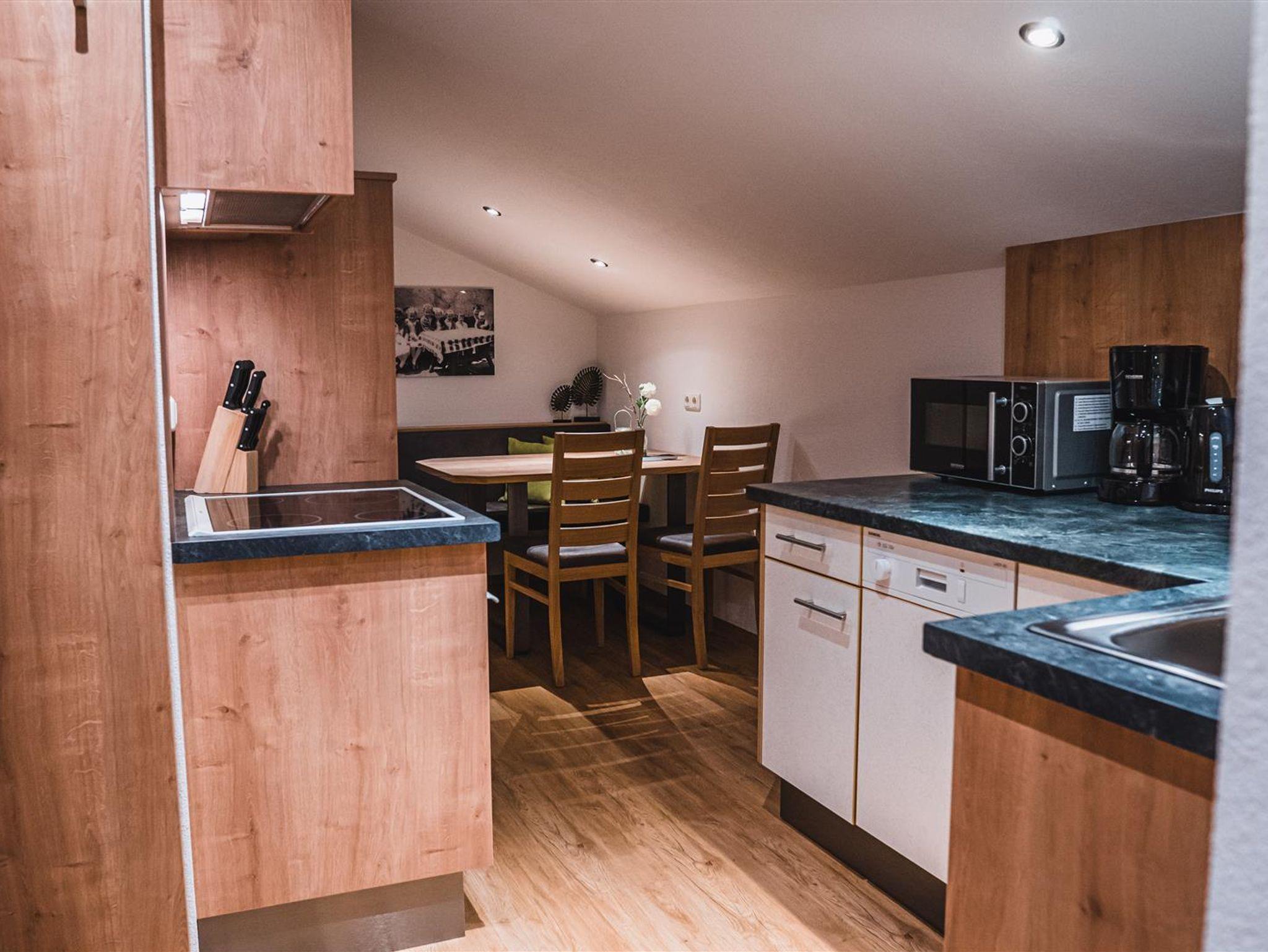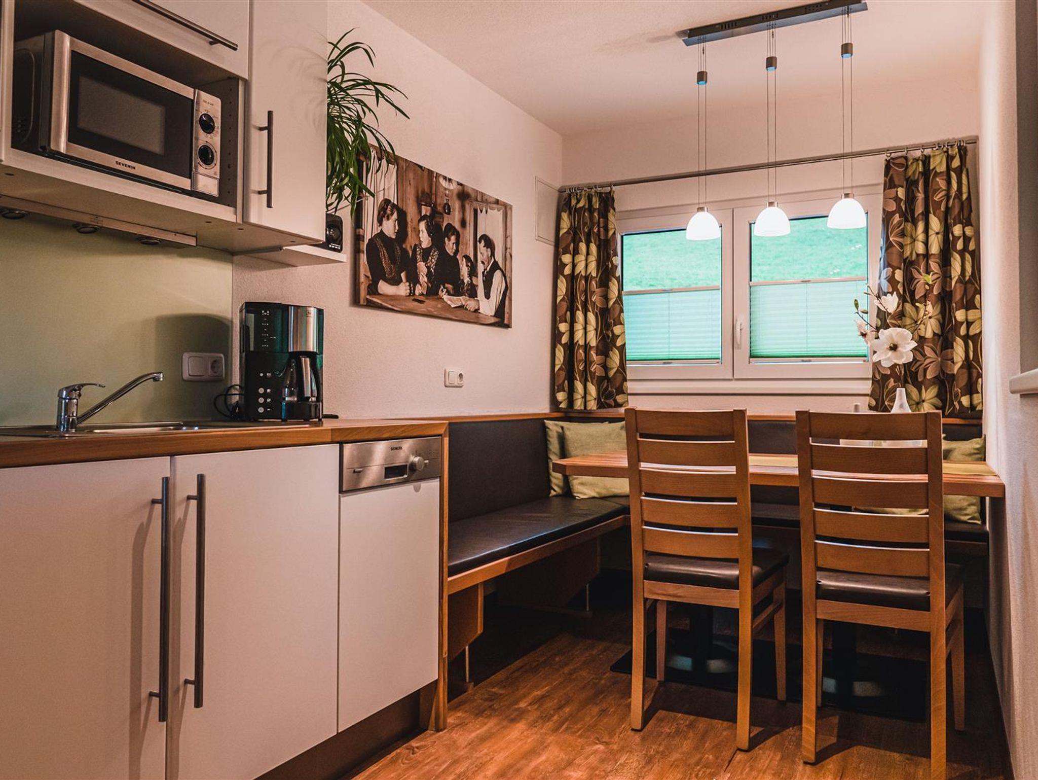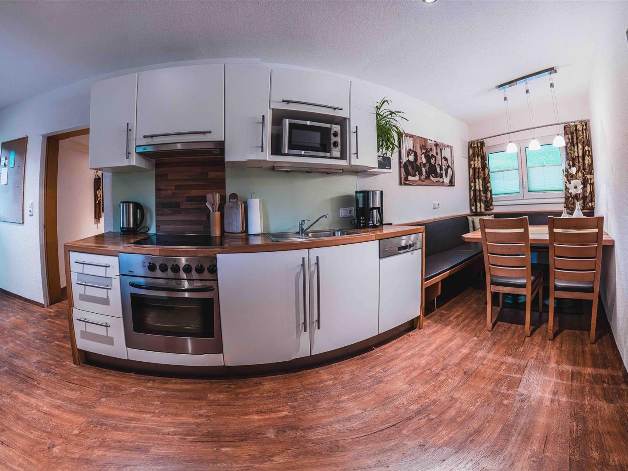 • gut ausgestattete Küche mit gemütlicher Essecke und TV-Sat,