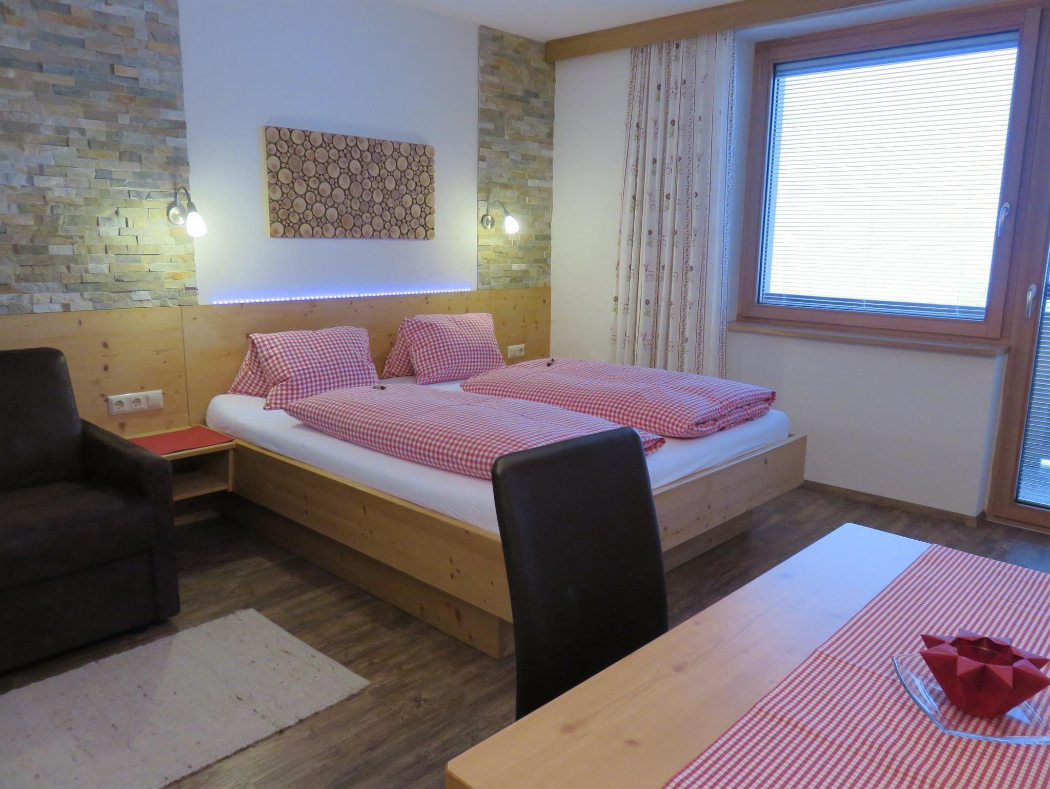 Gemütlich und hochwertig eingerichtetes Wohnstudio für 2 Personen mit nach Westen ausgerichteten Balkon und herrlichen Blick auf die Gletscher der Venedigergruppe. Allergiker freundlich ausgestattet. Die Fußbodenheizung sorgt für angenehme Wärme.