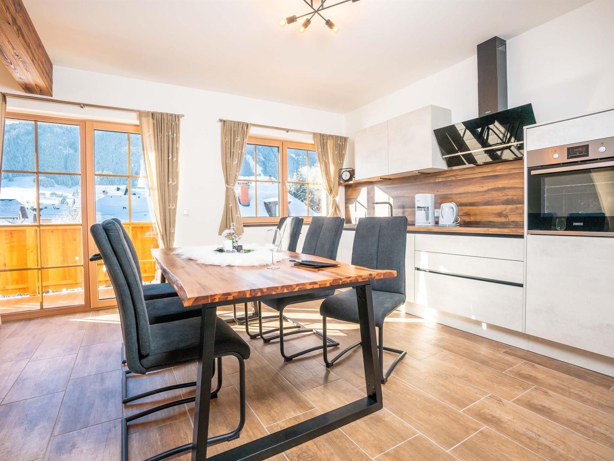 Die Wohnung ist auf zwei Stockwerke aufgeteilt. Eine moderne Küche mit E-Herd, Backrohr, Geschirrspüler, Kühlschrank und Kaffeemaschine lädt zu kreativen Kochsessions ein und ein großer Esstisch für 6 Personen bietet genügend Platz für gemeinsames Essen und Zusammensitzen. Der Wohnbereich überzeugt mit einer großen Wohnlandschaft mit Smart-TV und kostenlosem WLAN.