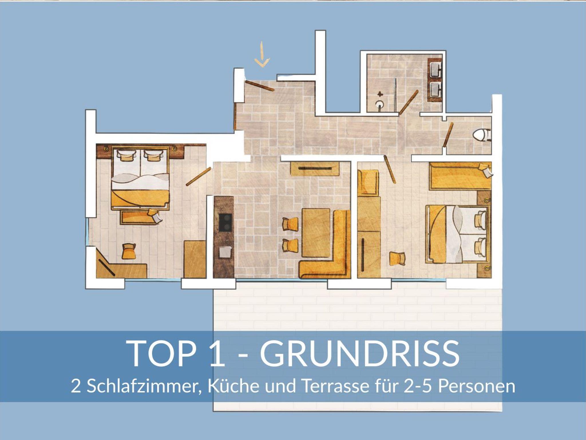 Top 1 Wohnung mit Terrasse und Garten Zaunkönig (EG) Diese Wohnung liegt im Erdgeschoß und besticht durch eine Terrasse in unserem großzügigen Garten. Insgesamt umfasst die Wohnung 65 m2 geteilt in eine hochwertig ausgestattete Wohnküche, 2 Schlafzimmer und ein wunderschönes Badezimmer mit komfort Dusche sowie einem separaten WC. Die Wohnung bietet Platz für bis zu 5 Personen.