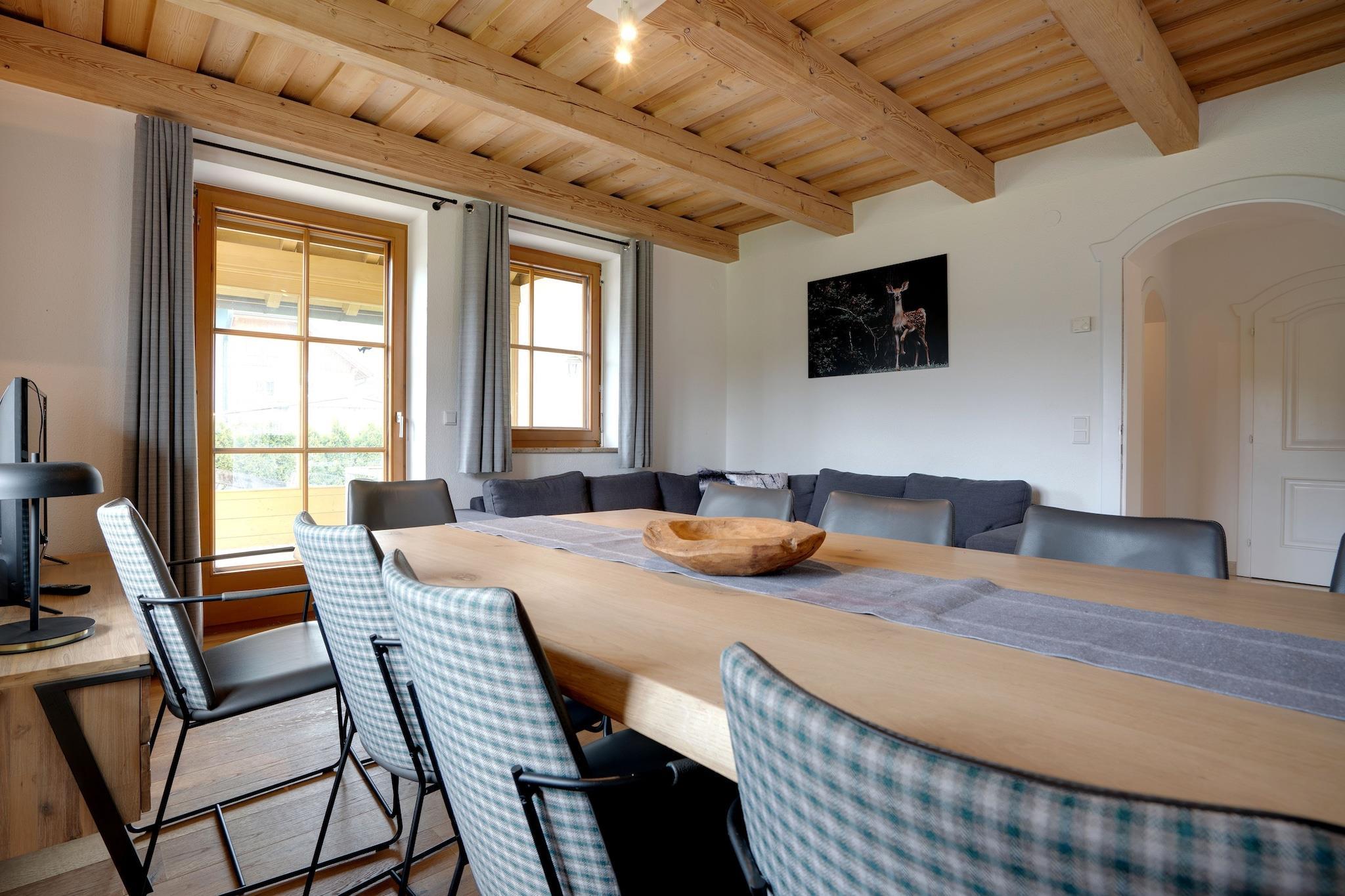 Dette store fritliggende feriehus/hytte til maks. 18 personer ligger i Mauterndorf i Lungau i UNESCOs Salzburger Lungau Biosphere Park i Salzburgerland, direkte i skiområdet Grosseck-Speiereck-Mauterndorf og ved eventyrbjerget Grosseck-Speiereck. Feriehuset byder på en stor stue-spisestue med opholdsområde og et stort spisebord til 18 personer, et moderne fuldt udstyret køkken, 7 rummelige soveværelser (2 med badeværelse en-suite, 1 med en ekstra køjeseng og 3 med en ekstra sovesofa til enten 1 person eller 2 personer) og 2 ekstra badeværelser. Huset har desuden opholdsstue med sauna, bruser og liggestole, skiopbevaringsrum, vaskemaskine og tørretumbler samt i alt 5 parkeringspladser. Haven kan også bruges. Feriehuset ligger roligt og idyllisk i udkanten af Mauterndorf. Dette hus er direkte forbundet med centrum og Grosseck / Speiereck / Mauterndorf skiområde med 50 kilometer pister via en vandresti. I bil kan du nå skiområderne Obertauern med 100 kilometer pister, Fanningberg / Mariapfarr med 30 kilometer pister og Katschberg med 80 kilometer pister på cirka 15-20 minutter. Om sommeren har Mauterndorf og hele Lungau ferieregion også meget at byde på for aktive feriegæster med forskellige vandreruter, varierede cykel- og mountainbiketure, den berømte Taurachbahn og Lungau/Katschberg golfklub. Der er ren badesjov i Mauterndorf oplevelsesbadet, ved Trogalmsee eller ved Schlierersee. Der er masser af indkøbsmuligheder til dine daglige behov lige i byen, samt et godt udvalg af restauranter.