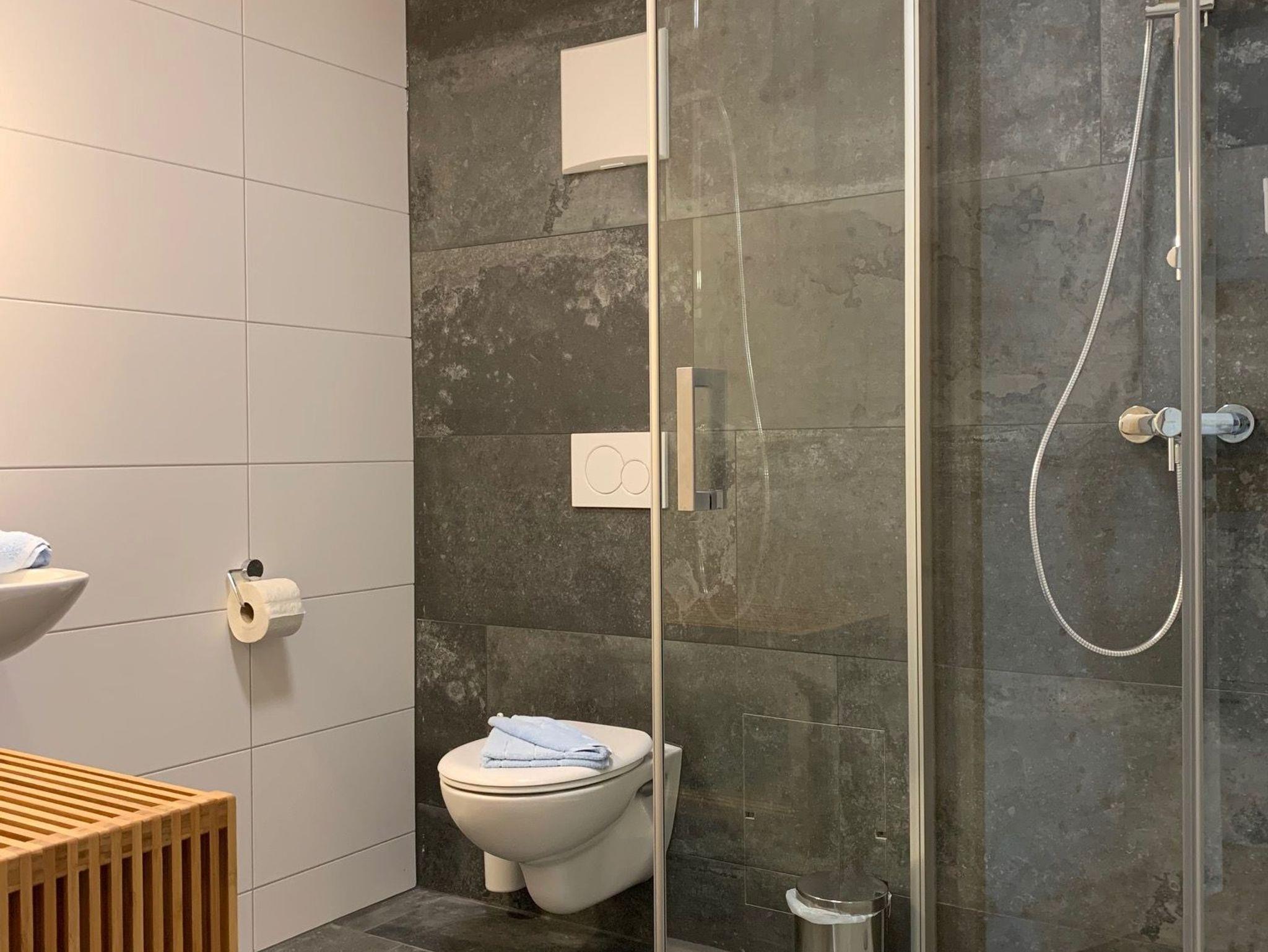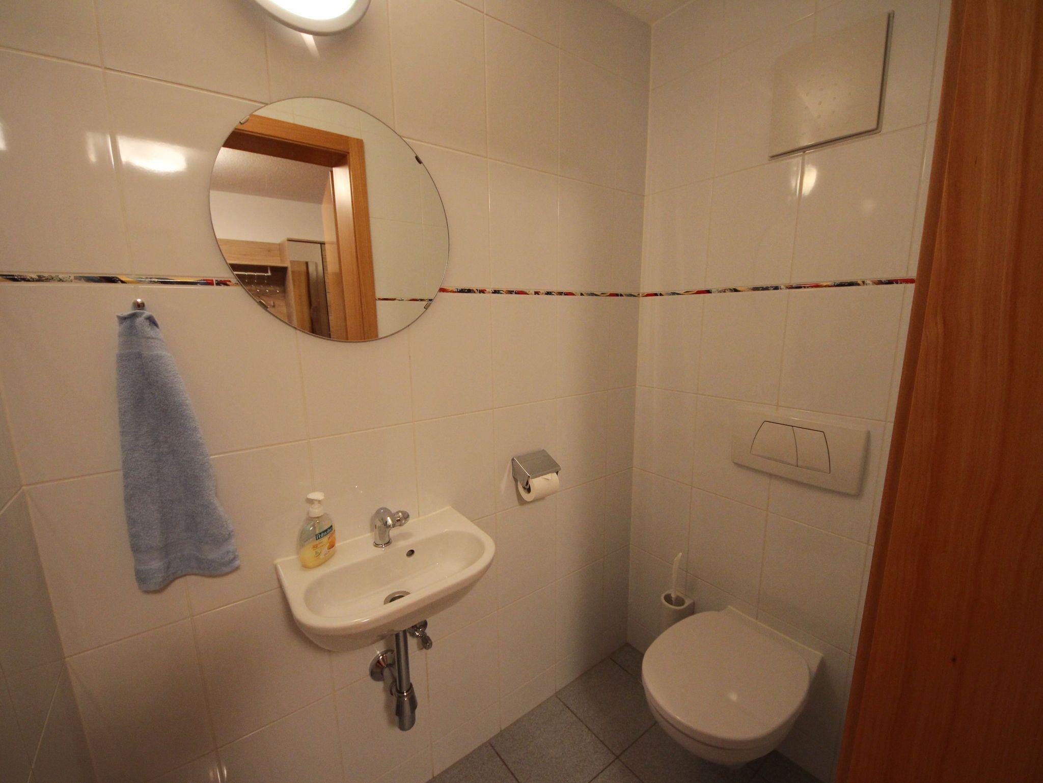 Bad, Dusche und WC im OG, einem Badezimmer im EG und einem separaten WC