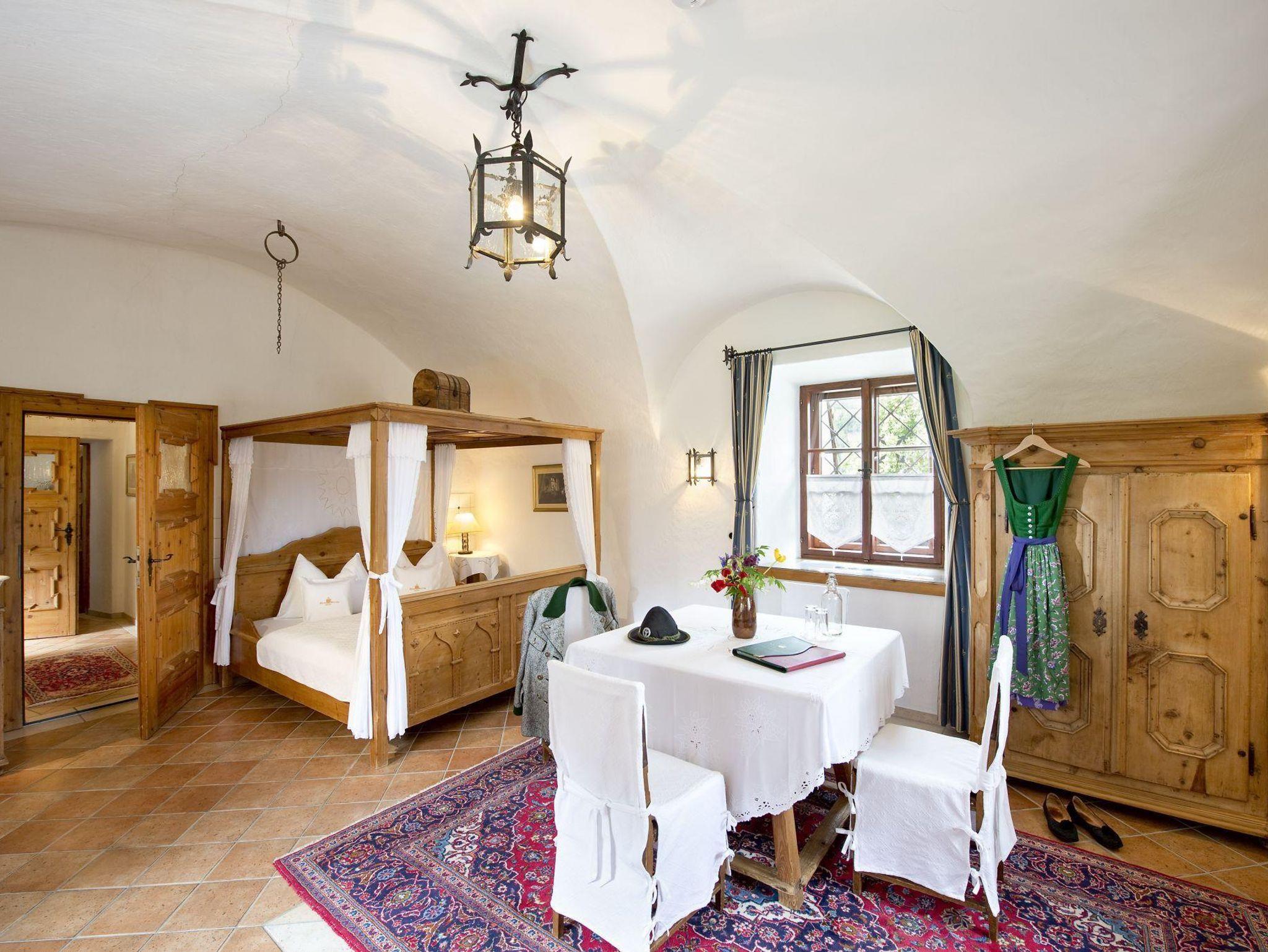 Schlossromantik pur in den ruhigen, kuscheligen, wohlig warmen, zirbenholzduftenden Gemächern, auf der Sonnenterrasse am Schloss-Teich oder im historischen Gewölbe von anno 1150.