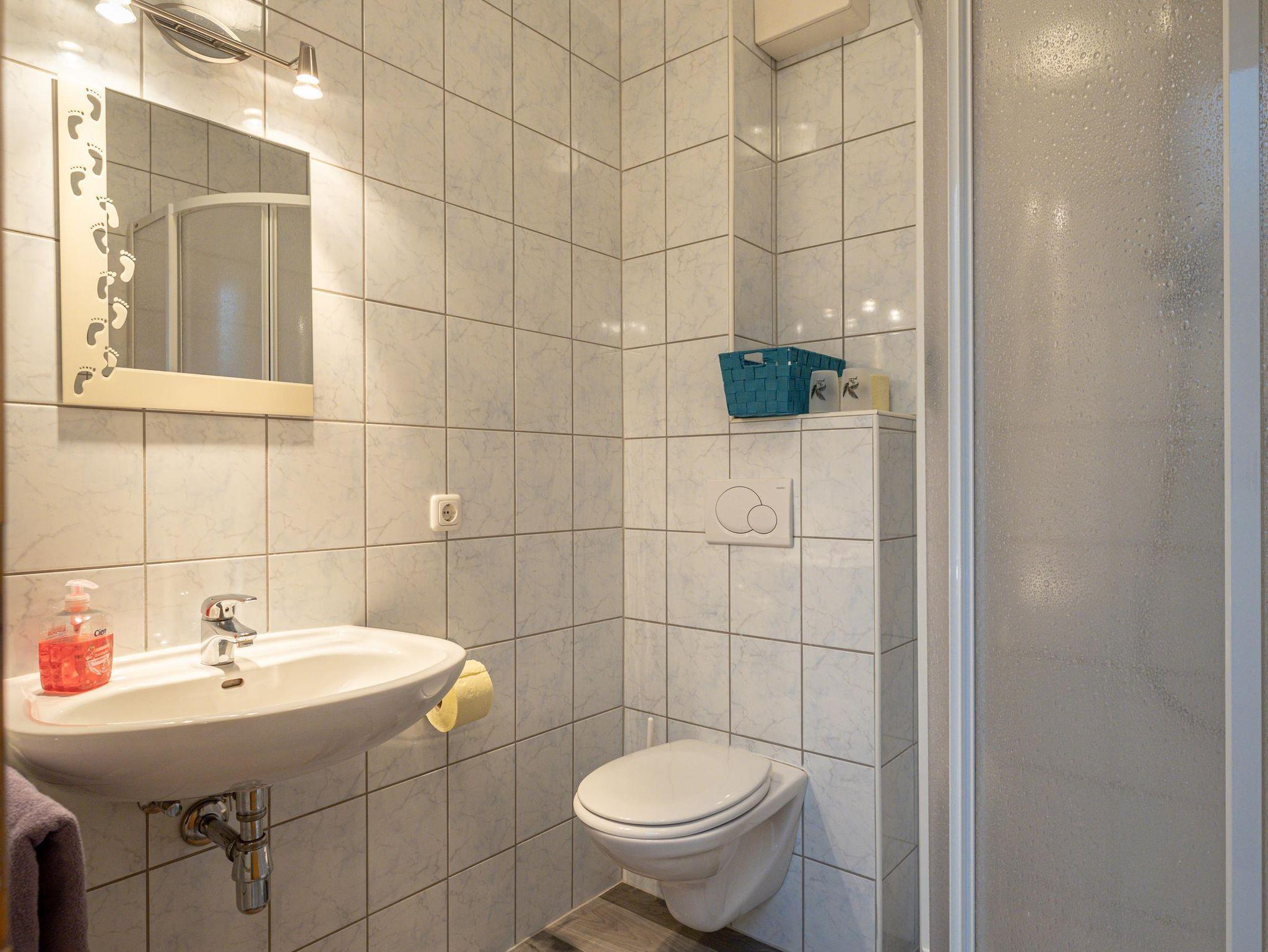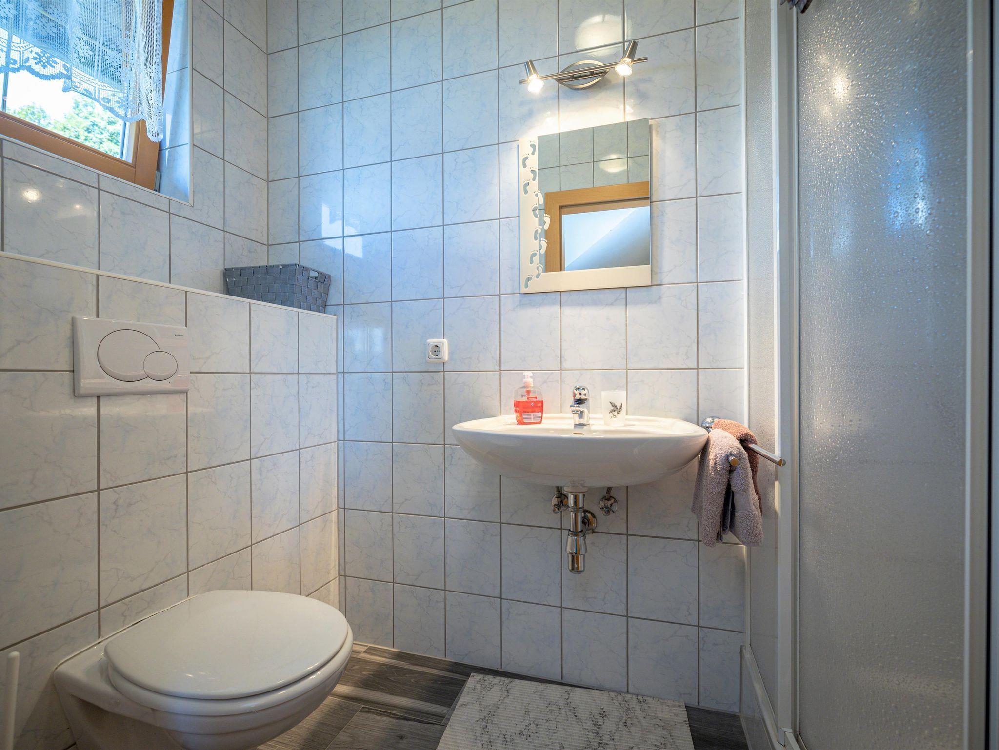 Gemütliches Komfortzimmer mit Dusche/WC, SAT-TV und Ausblick auf den Wald.