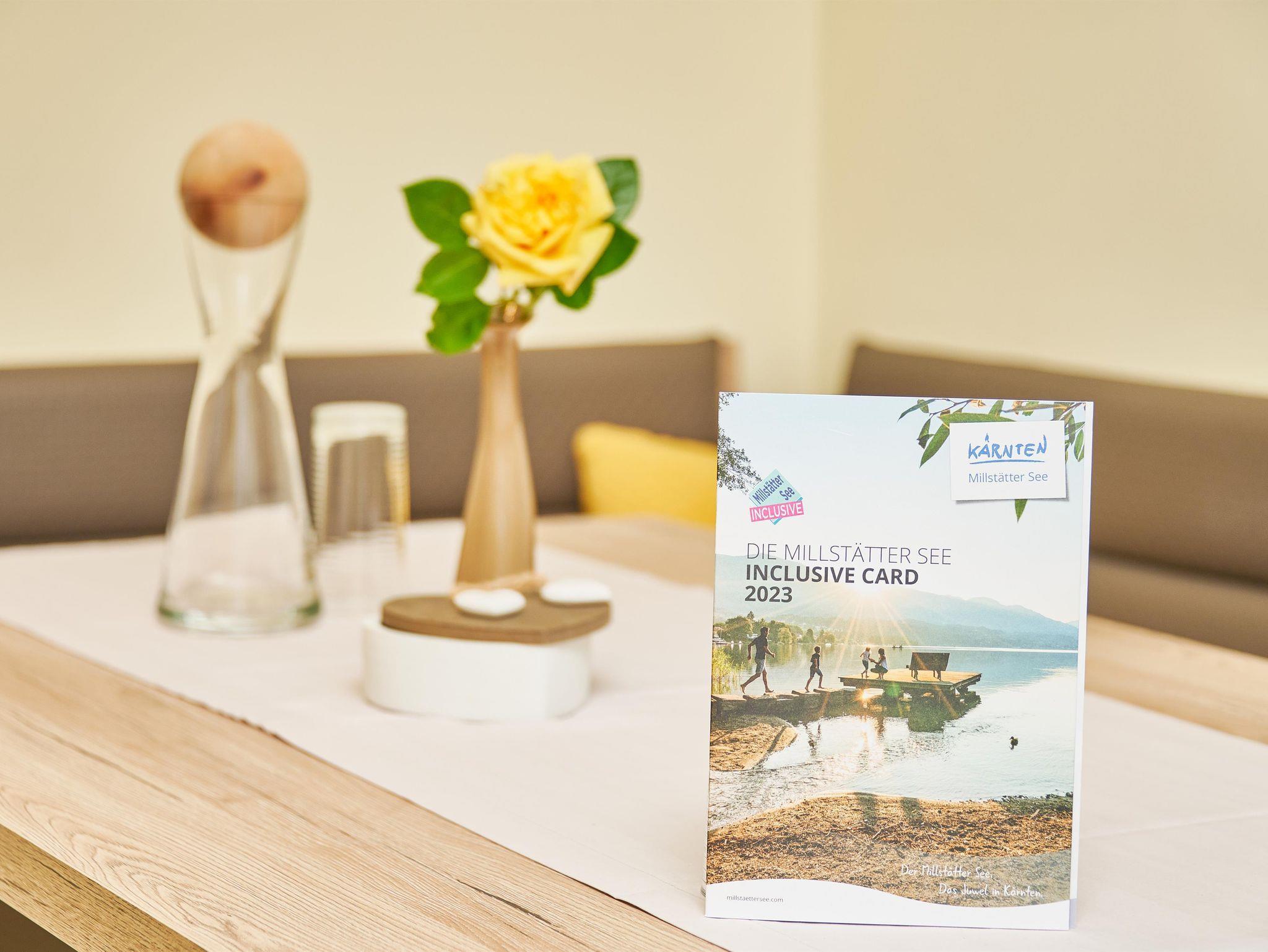 Im Preis enthalten ist die Millstättersee-Inclusivecard, die zahlreiche Vorteile bietet: kostenlose Nutzung aller Strandbäder rund um den See, des Hallenbads in Spittal, der drei Mautstraßen, Seeüberfahrten, kostenlose Nutzung der Kärntner S-Bahn, Sport- und Familienprogramme und viele weitere Urlaubsattraktionen.