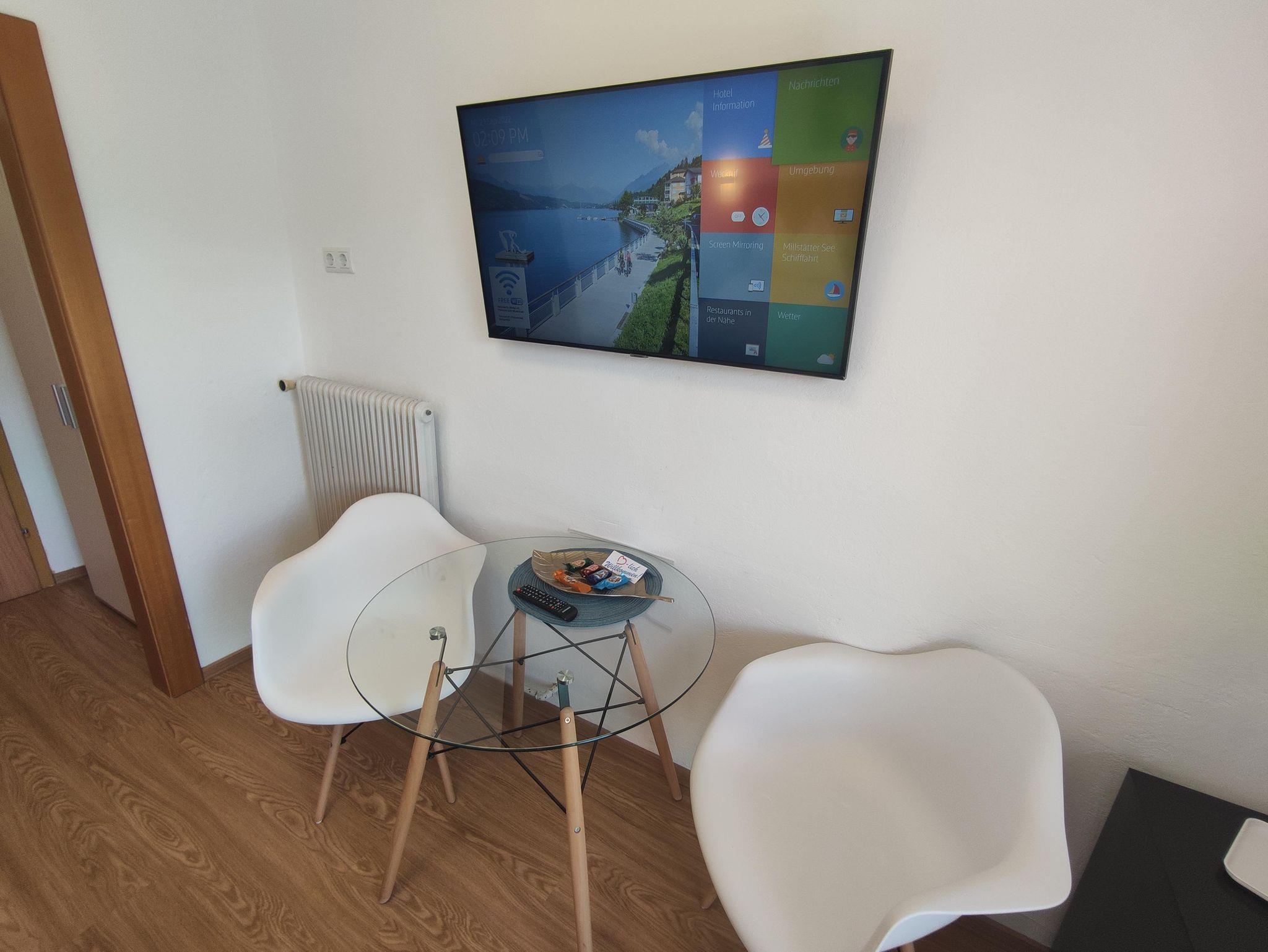 Ein fantastischer Fernblick von über 25 km über See und zu den Bergen der Reiseckgruppe und den Hohen Tauern bietet sich von unseren sehr gut ausgestatteten Balkon- und Terrassenzimmern.