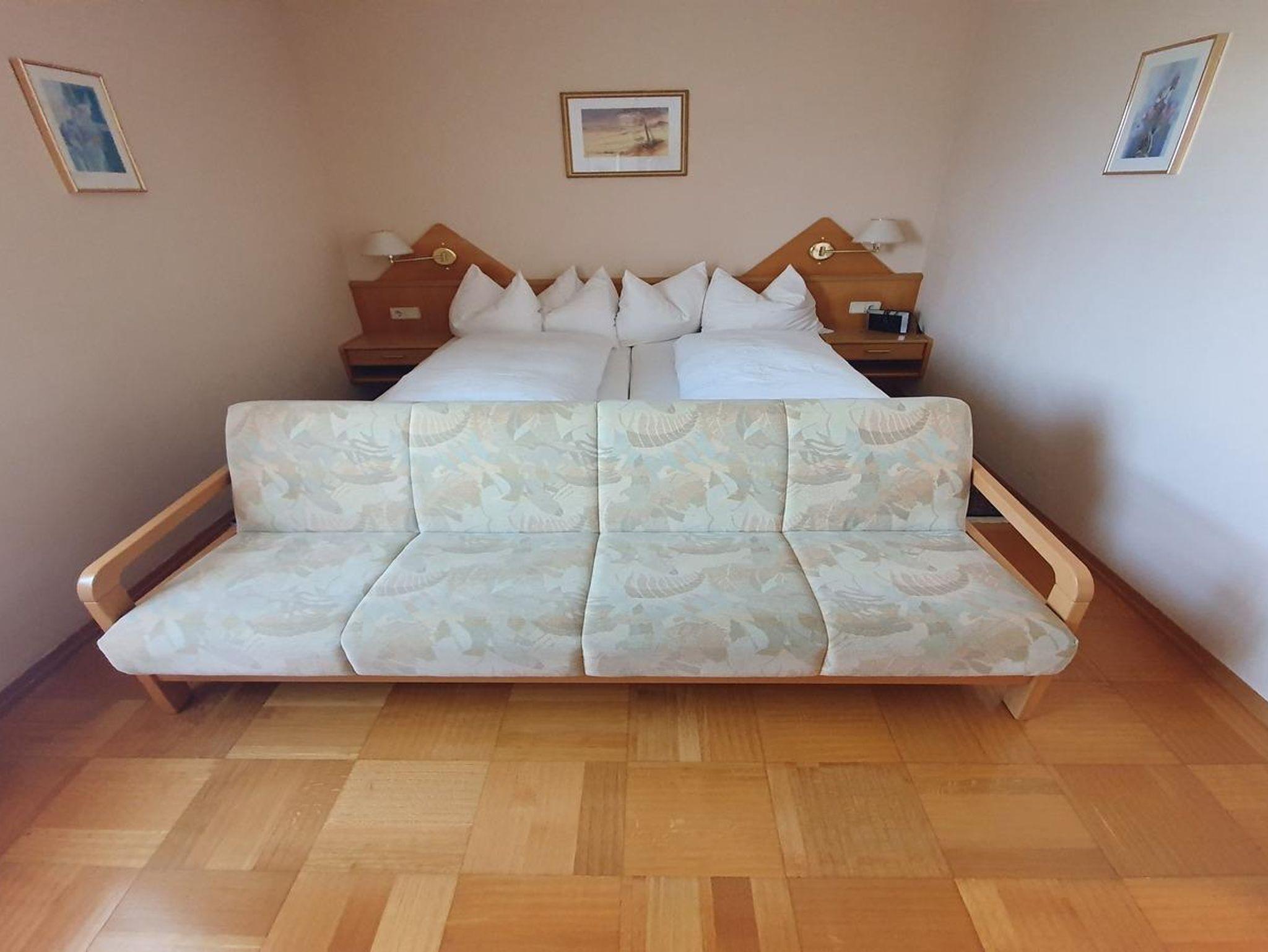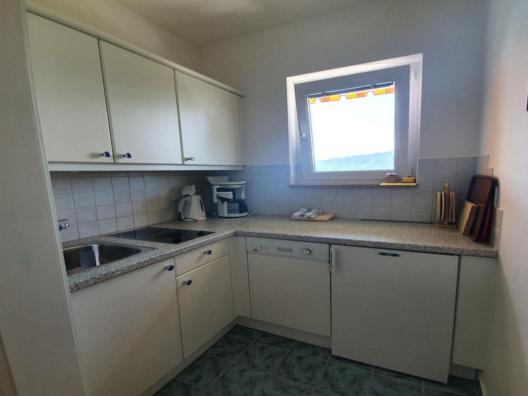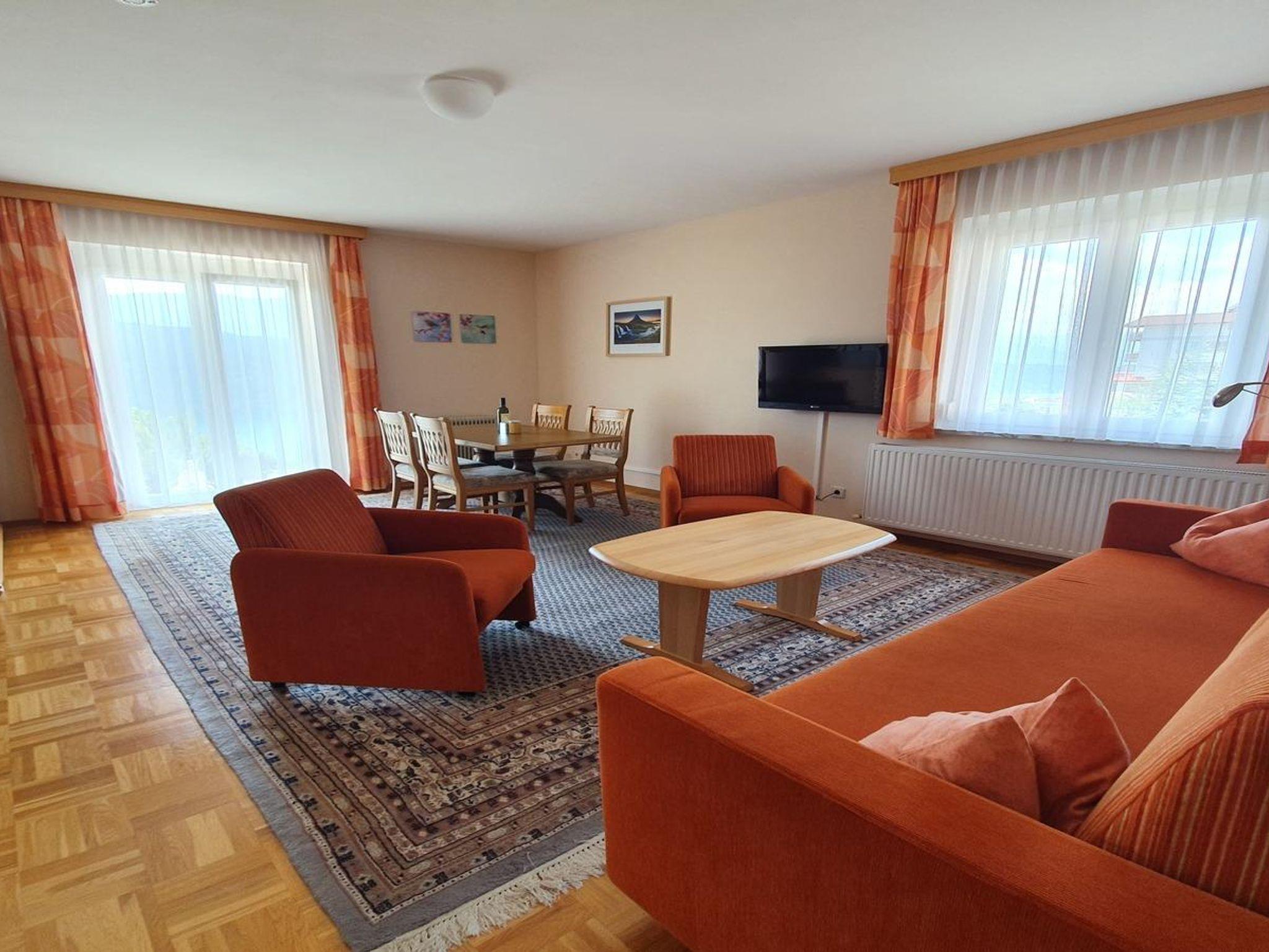 Appartement für 2-4 Personen mit Balkon und Seeblick, im 1. Stock auf der Süd-Westseite des Hauses. Die Wohnung ist ca. 63 m² groß und verfügt über ein großzügiges Wohnzimmer mit Kochzeile, ein separates Schlafzimmer und eine Dusche/WC.