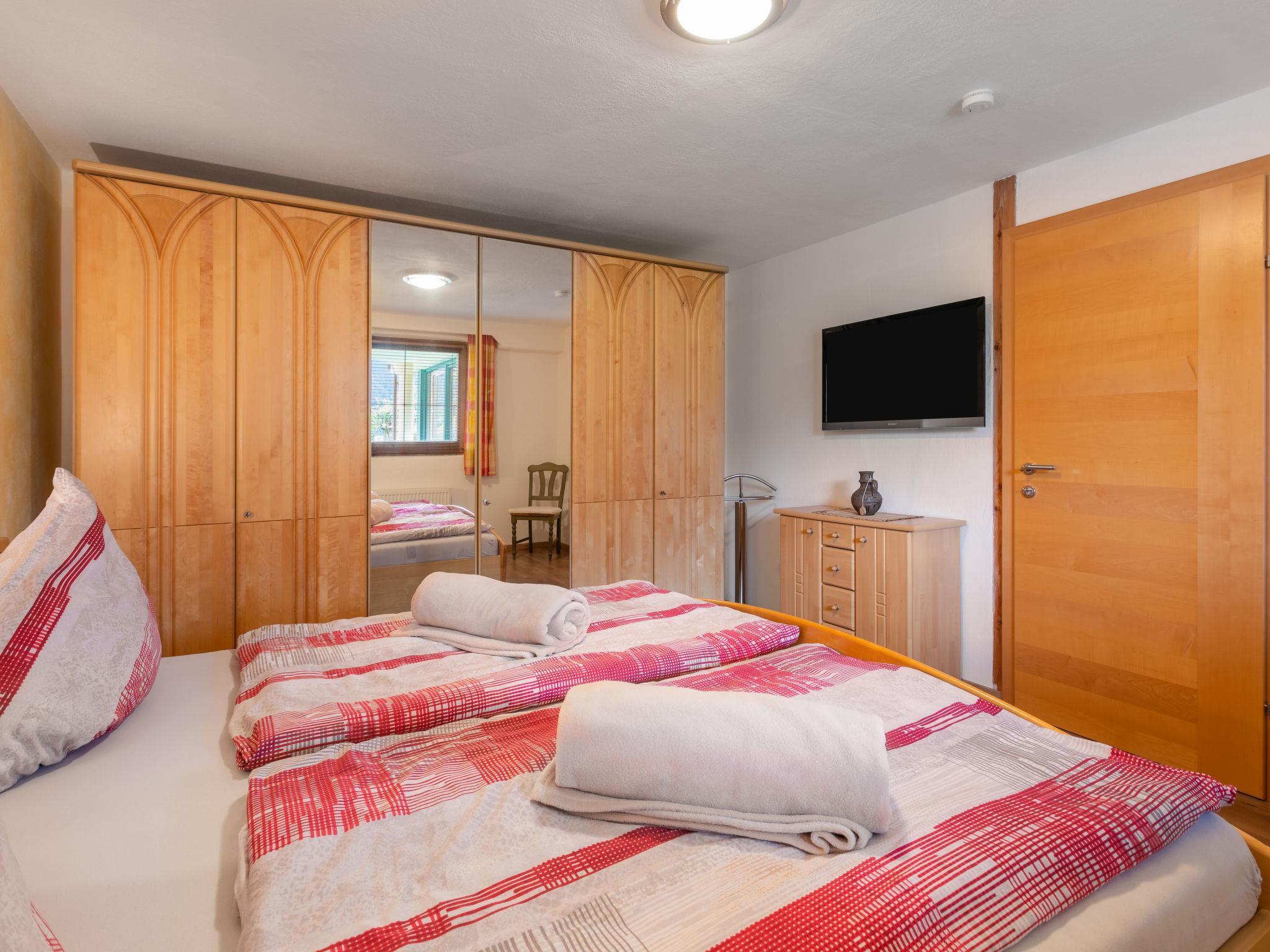 4-room apartment 63 m2, lower ground floor. Spacious, cosy furnishings: entrance hall. 1 double bedroom with cable TV (flat screen). 1 small room with 1 bed. Open dining room. Living/sleeping room with 1 double sofabed (1 x 160 cm, length 200 cm), cable TV (flat screen). Open kitchen (oven, dishwasher, 4 ceramic glass hob hotplates, toaster, kettle, microwave, electric coffee machine). Bath/shower, sep. WC. Small terrace. Terrace furniture, barbecue. Beautiful view of the mountains. Facilities: washing machine. Internet (WiFi, free). Please note: non-smokers only. The sleeping area in the living room can be isolated from the rest of the room by a curtain. 50613-018222-2020