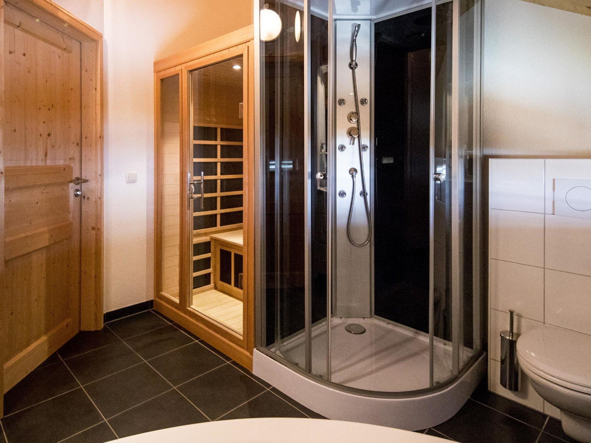 "Relax Holiday Mur 21a", 5-room chalet 100 m2. Spacious, tasteful furnishings: large living/dining room with Scandinavian wood stove, dining nook, satellite TV and flat screen. 3 double bedrooms. Walk-through room with 1 bed and 1 x 1 bunk beds. (oven, dishwasher, 4 ceramic glass hob hotplates, microwave, electric coffee machine). 2 showers/WC, hydro massage shower. Terrace. Terrace furniture. Beautiful view of the countryside. Facilities: sauna. Internet (WiFi, free). Please note: non-smokers only. The property is one of a type of property or apartment. Different house equipment possible: either Finn sauna or infrared cabin. The sauna is an infrared cabin.