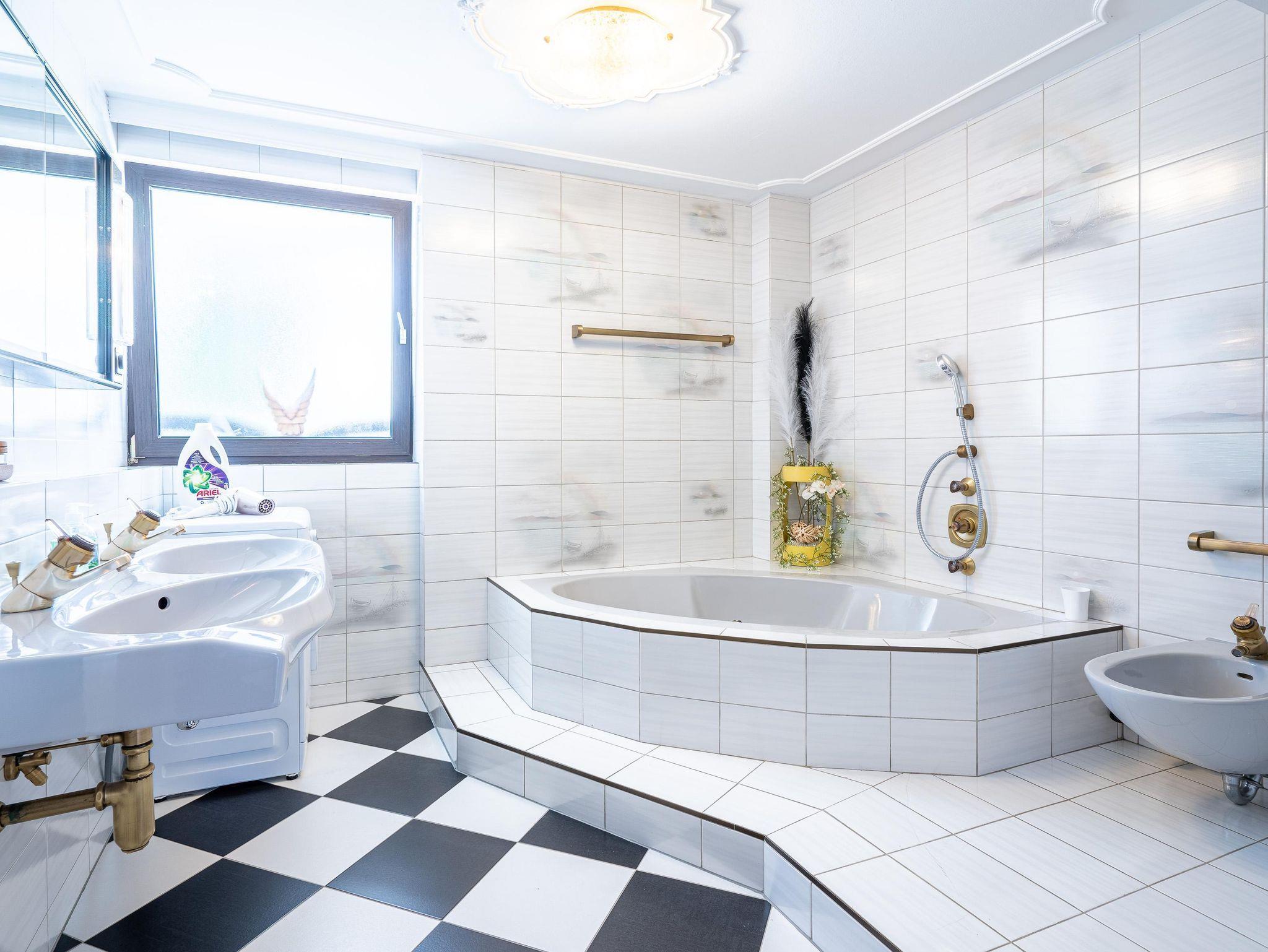 Willkommen im Apartment Deluxe, deinem perfekten Rückzugsort für einen angenehmen Aufenthalt. Das 96m² Apartment befindet sich im 1. Stock und verfügt über ein Doppelzimmer, ein Zimmer mit 2 Einzelbetten und ein Einzelzimmer. Eine gemütliche Wohnküche mit Flat-TV und einer Schlafcouch, sowie ein komfortables Bad mit laden zum Erholen nach einem ereignisreichen Tag ein. Zudem hat man die Möglichkeit auf der großen Terrasse mit Garten zu entspannen und zu verweilen.